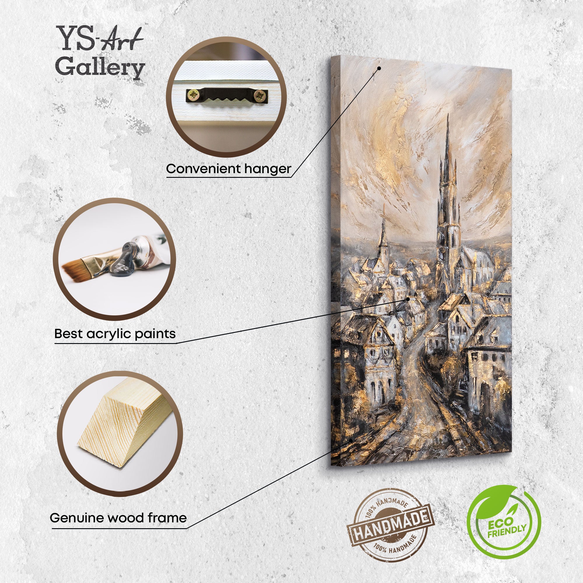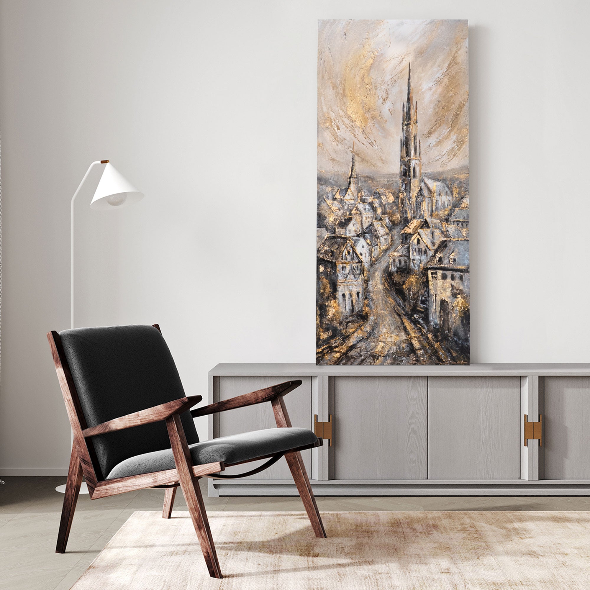 • Leinwand Kunst mit Kathedrale, Acrylfarben, Struktur