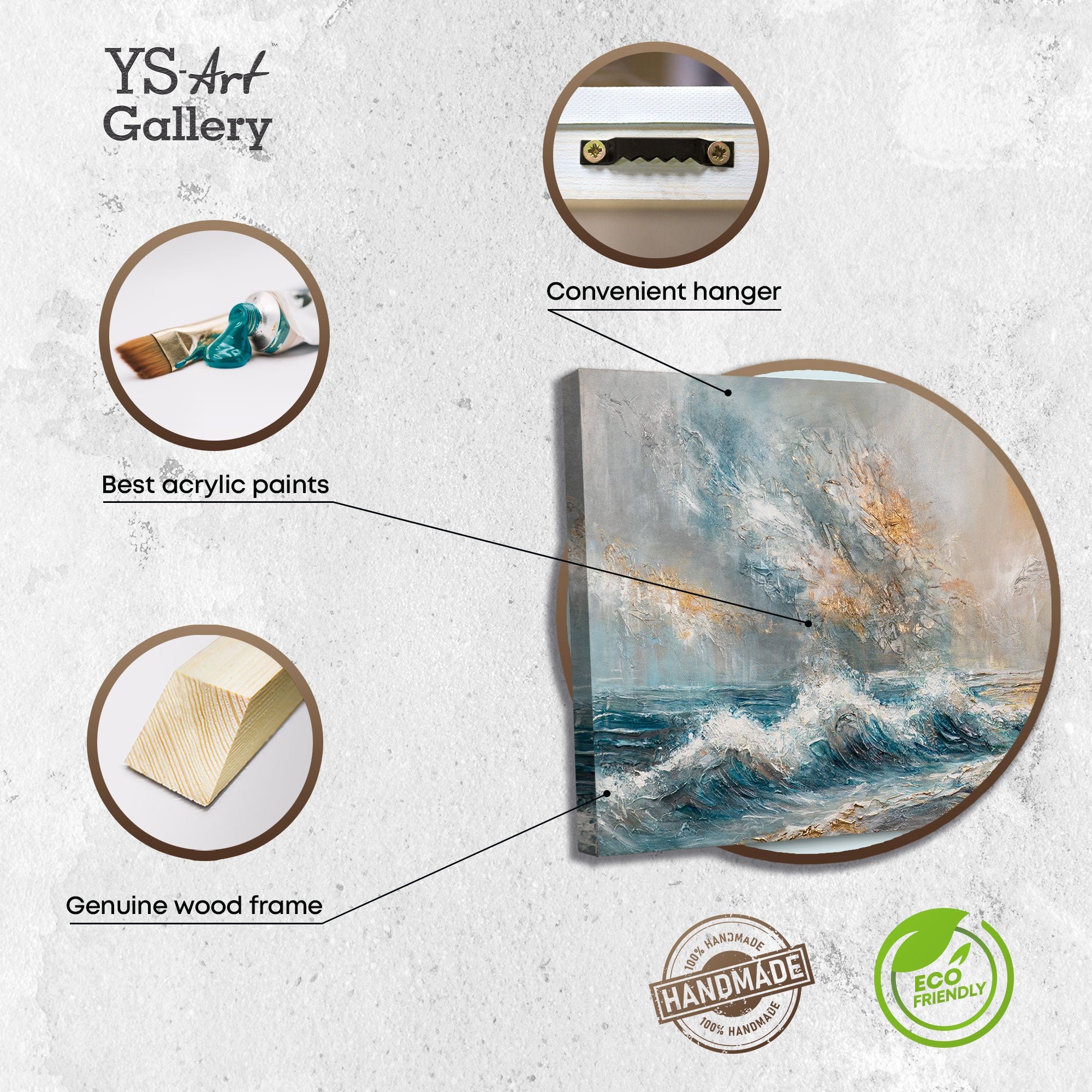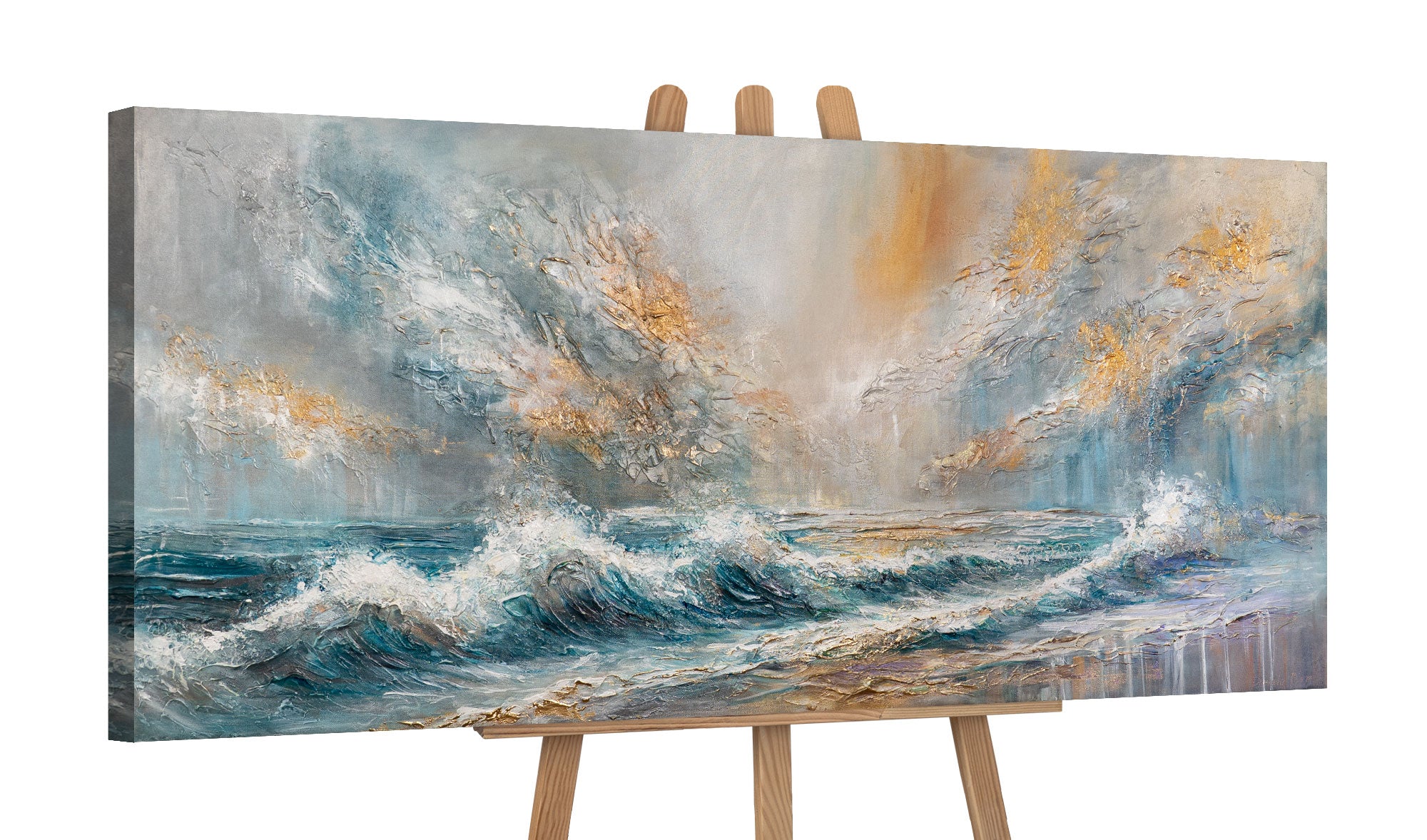 • Handgemaltes Wandbild "Sea Dawn" - abstraktes Acrylgemälde mit Wellen auf Leinwand 115x50cm