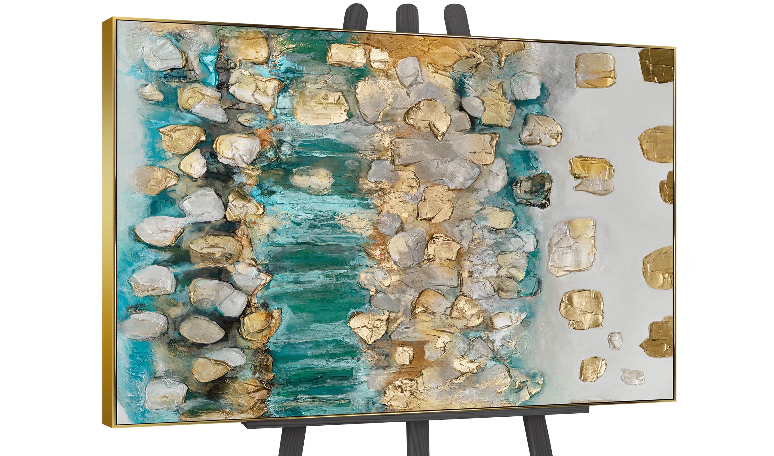 Dieses Kunstwerk, Teil der Kollektion große Bilder, ist ideal für eine stilvolle Wanddekoration und schafft eine künstlerische Atmosphäre in Ihrem Zuhause. Holen Sie sich jetzt dieses einzigartige Bild auf Leinwand mit Rahmen und verschönern Sie Ihr Wohnzimmer mit abstrakter Kunst.