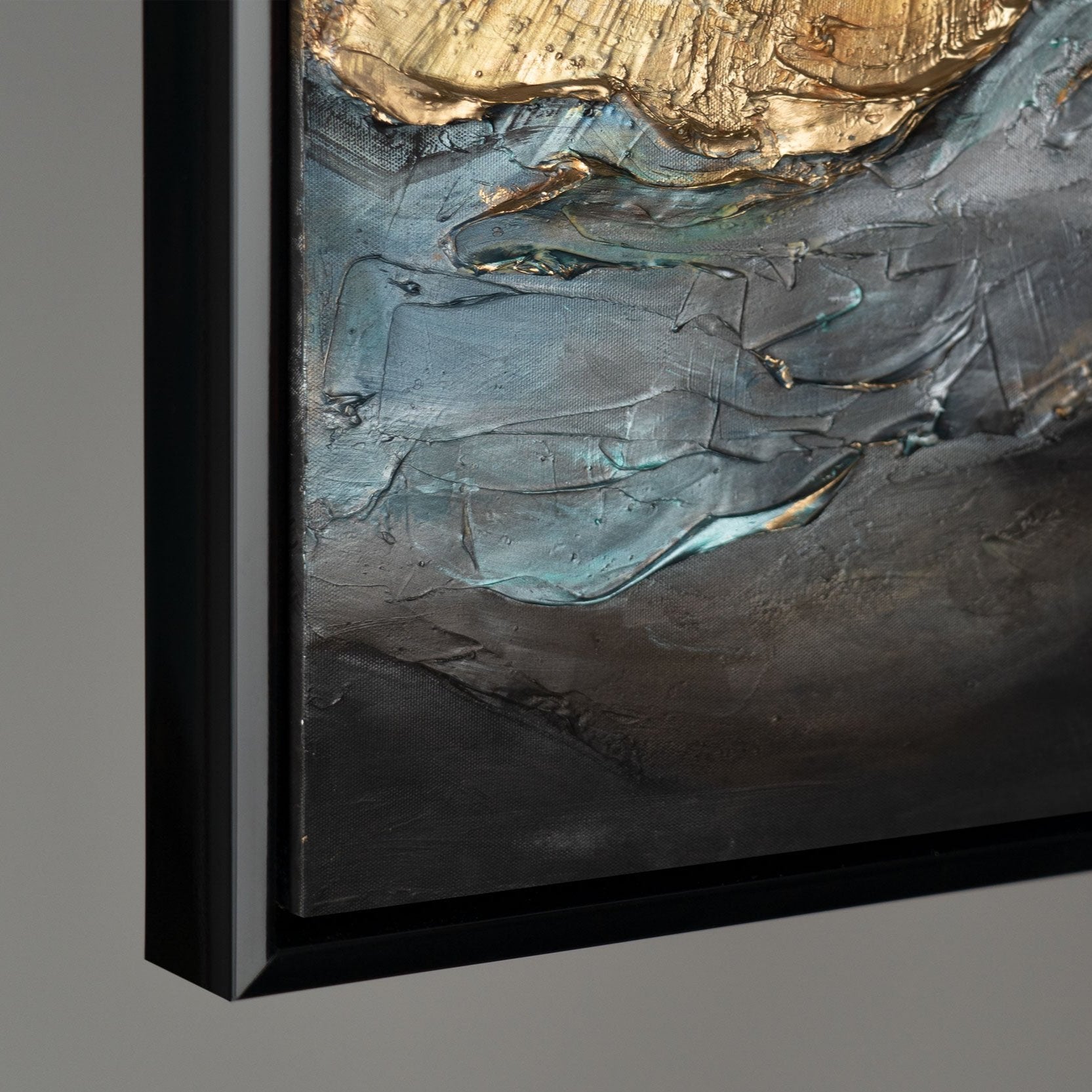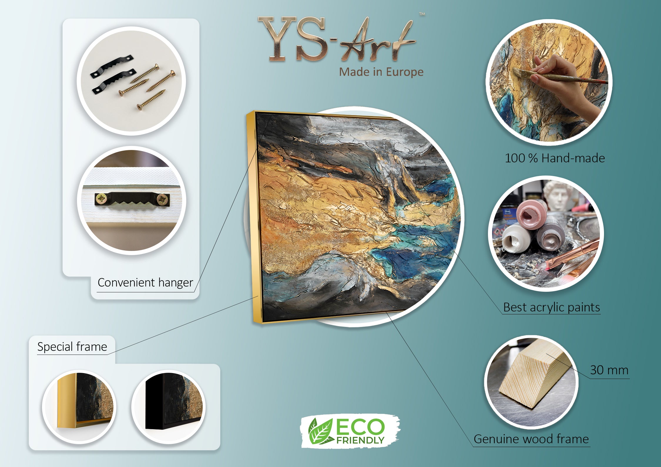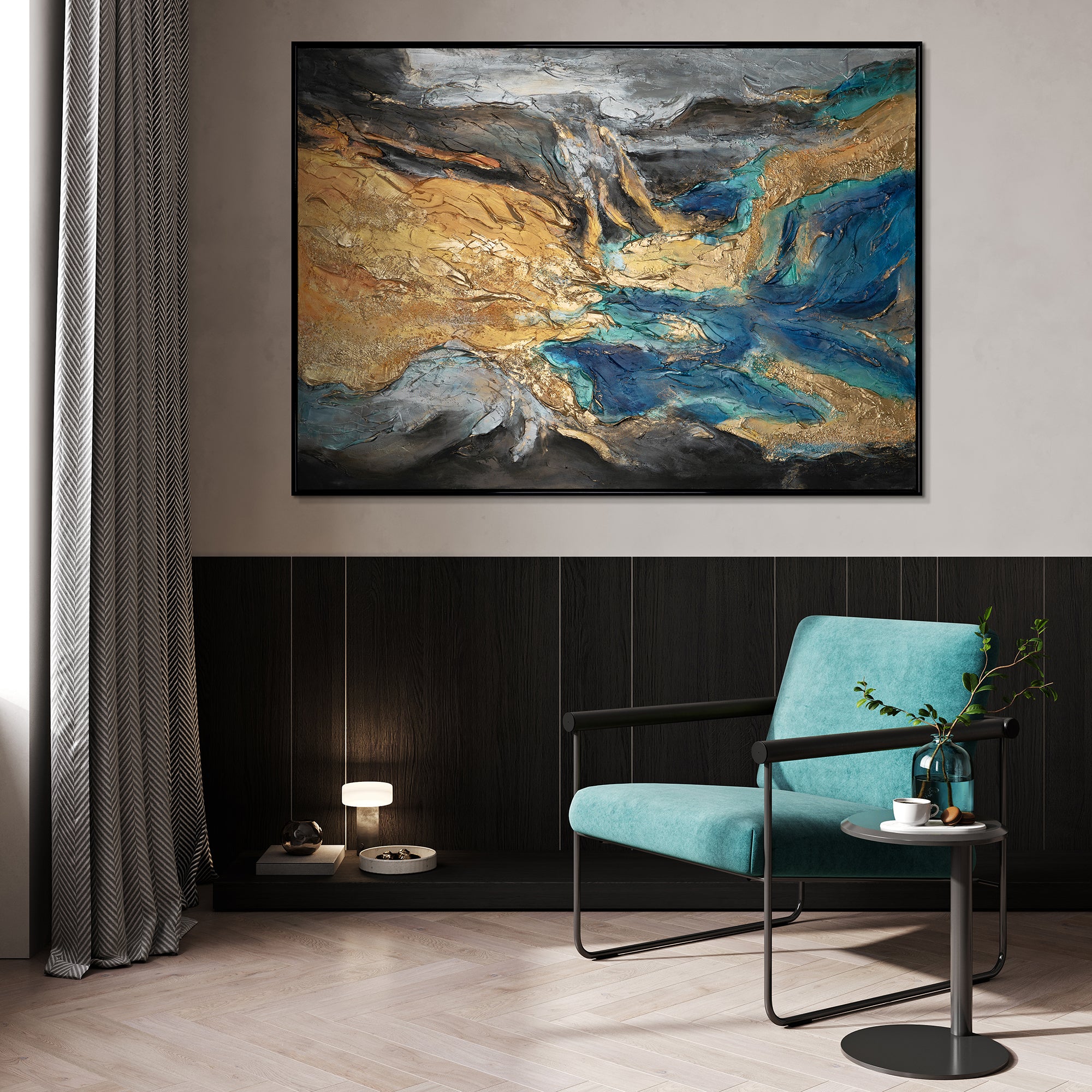 • Abstrakte Wandkunst, Moderne Kunst für Wohnzimmer, Handgemaltes Bild, Strukturierte Acrylmalerei, Zeitgenössische Kunst, Gold und Blau, Einzigartige Wanddekoration, Kunstwerk auf Leinwand, Künstlerische Wohnkultur, Hochwertige Kunst, 100% handgefertigt, Umweltfreundlich, Echtholzrahmen.