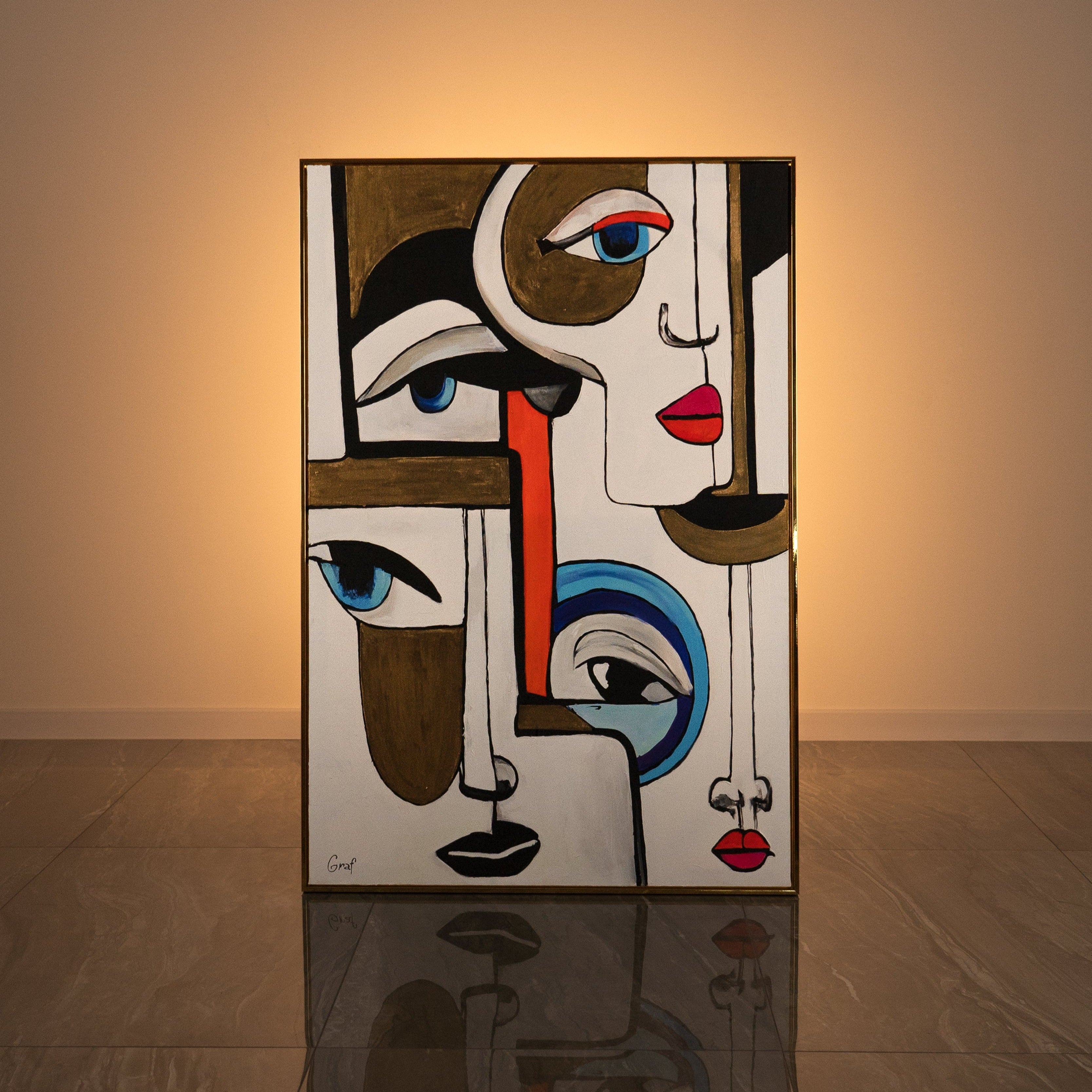 • Handgemalte acrylbilder auf leinwand mit Rahmen "Spiel der Geometrie"