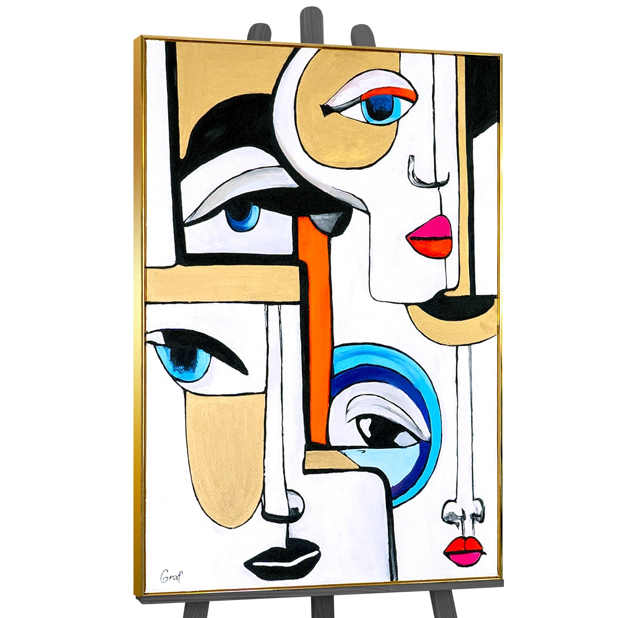 Handgemalte acrylbilder auf leinwand mit Rahmen "Spiel der Geometrie"