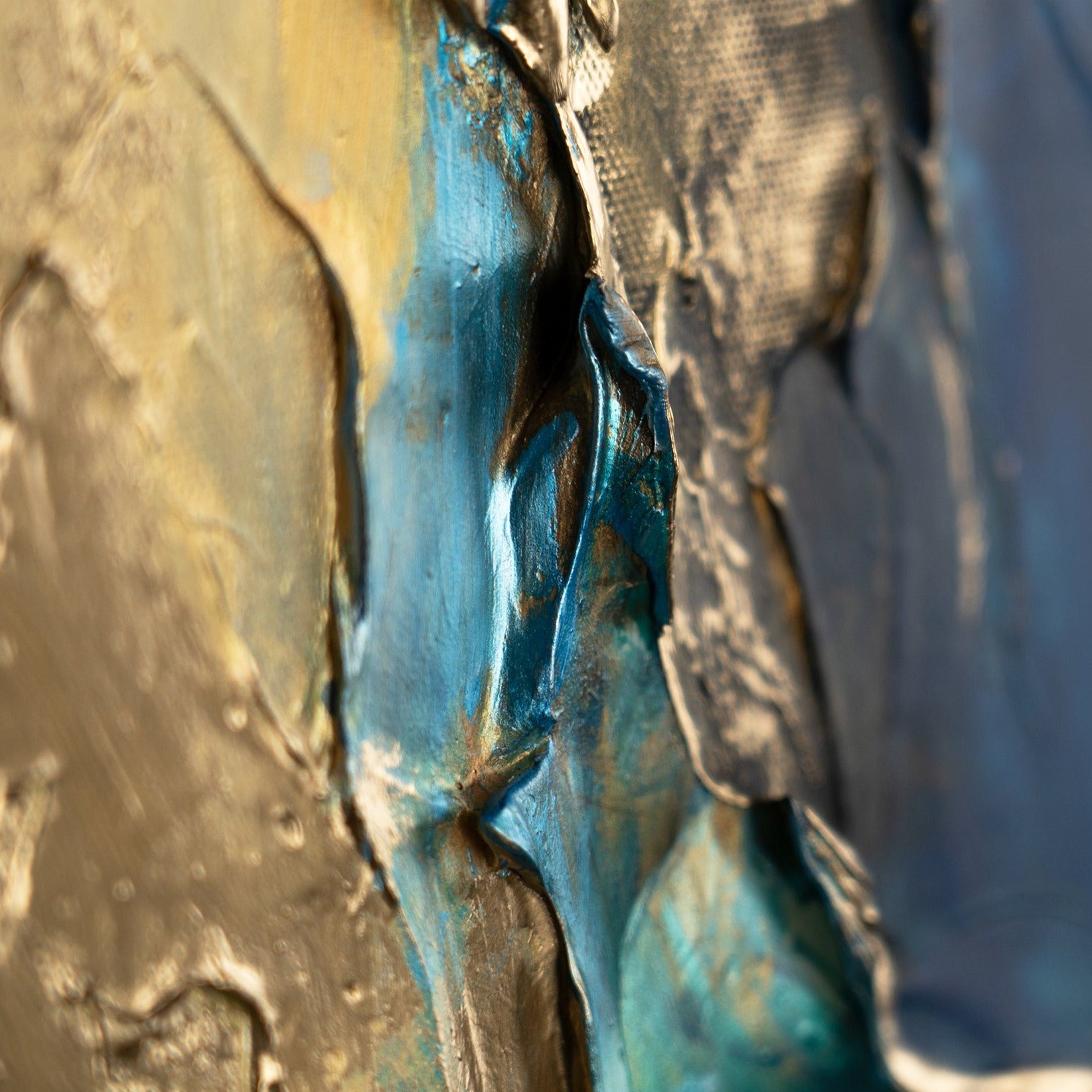• Abstraktes Acrylbild Gold Blau Handgemalt Struktur