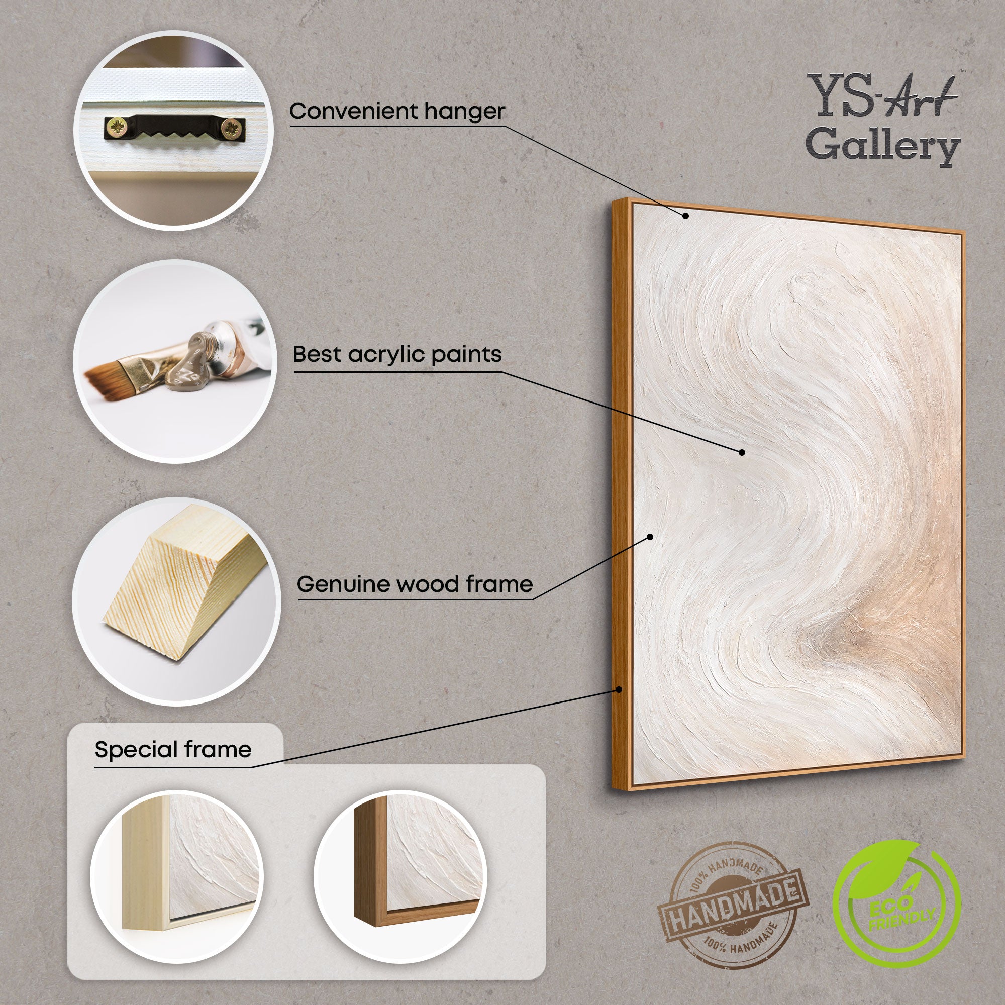 « Flux de lumière » est une peinture acrylique réalisée à la main qui captive par ses lignes douces et fluides et sa texture délicate. Les tons clairs, naturels et beiges évoquent la légèreté et la tranquillité, tandis que la surface texturée suggère les reflets de la lumière et le mouvement du vent. Cette œuvre d'art confère une ambiance sereine et élégante à toute pièce.