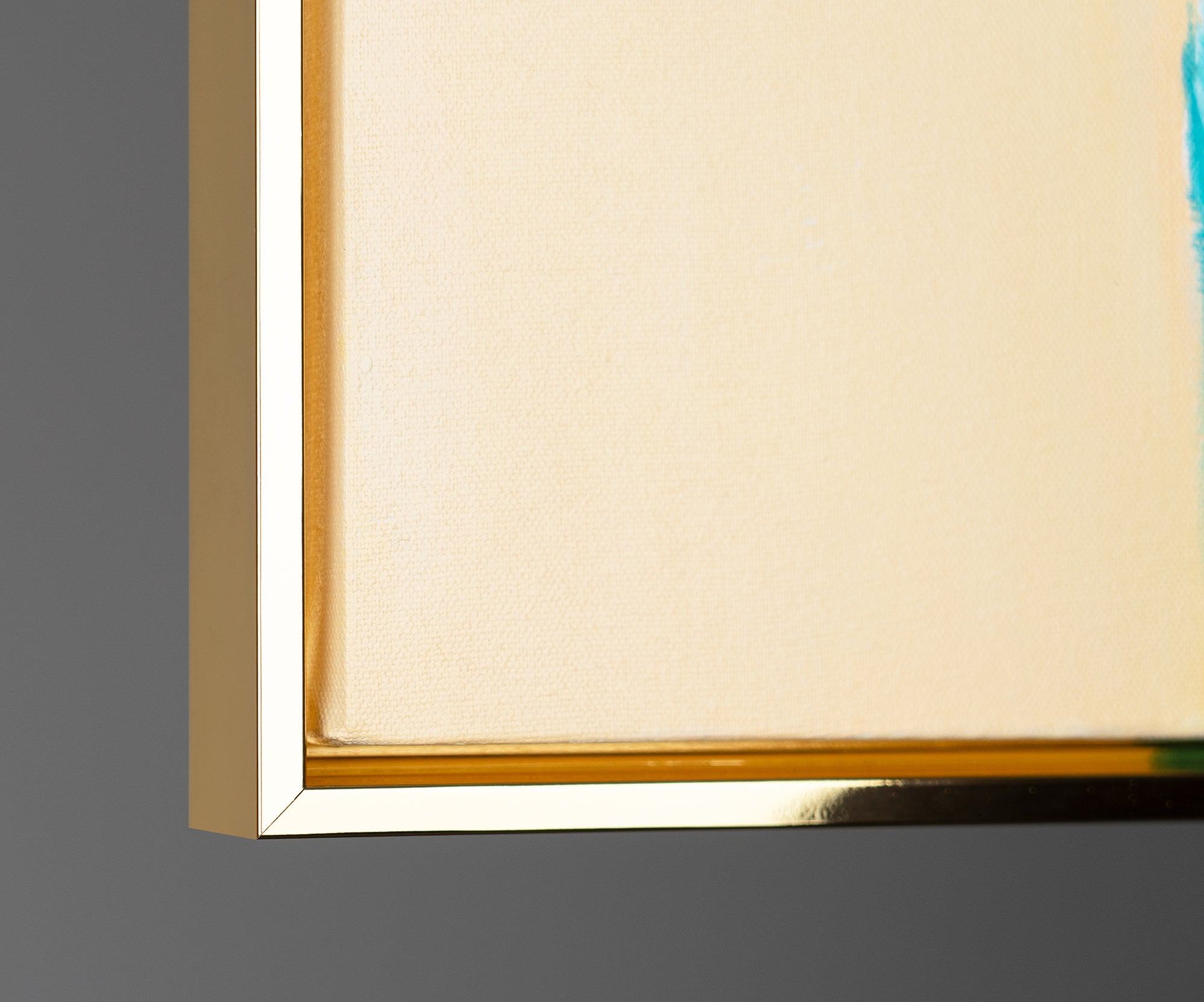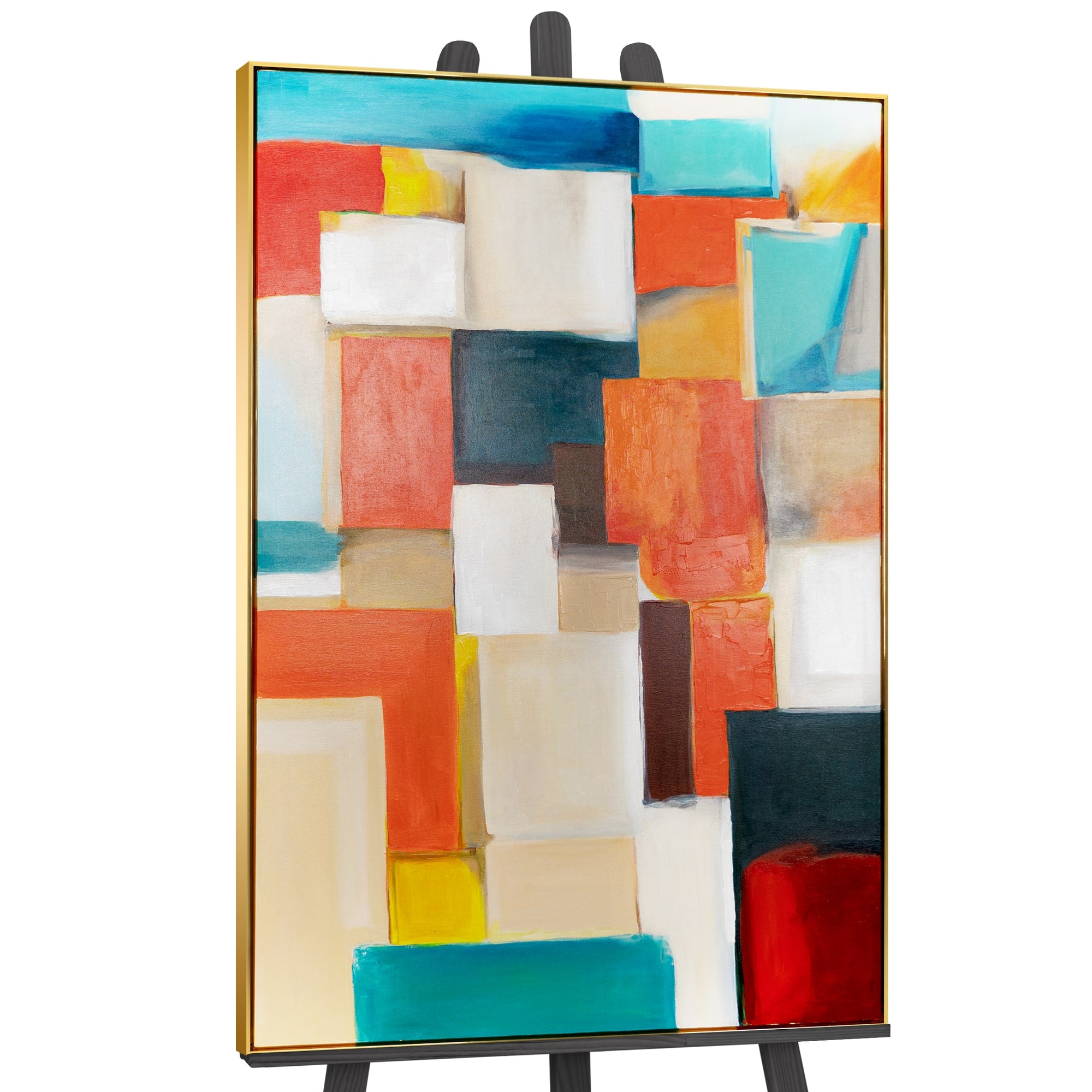 • Moderne abstrakte Kunst, buntes Gemälde, geometrisches Design, hochwertige handgemalte Leinwand, exklusiver goldener Rahmen, zeitgenössische Dekoration, echte Acrylfarben, umweltfreundliche Materialien, luxuriöse Wandkunst, Wohnzimmerdekoration, handgefertigtes Kunstwerk