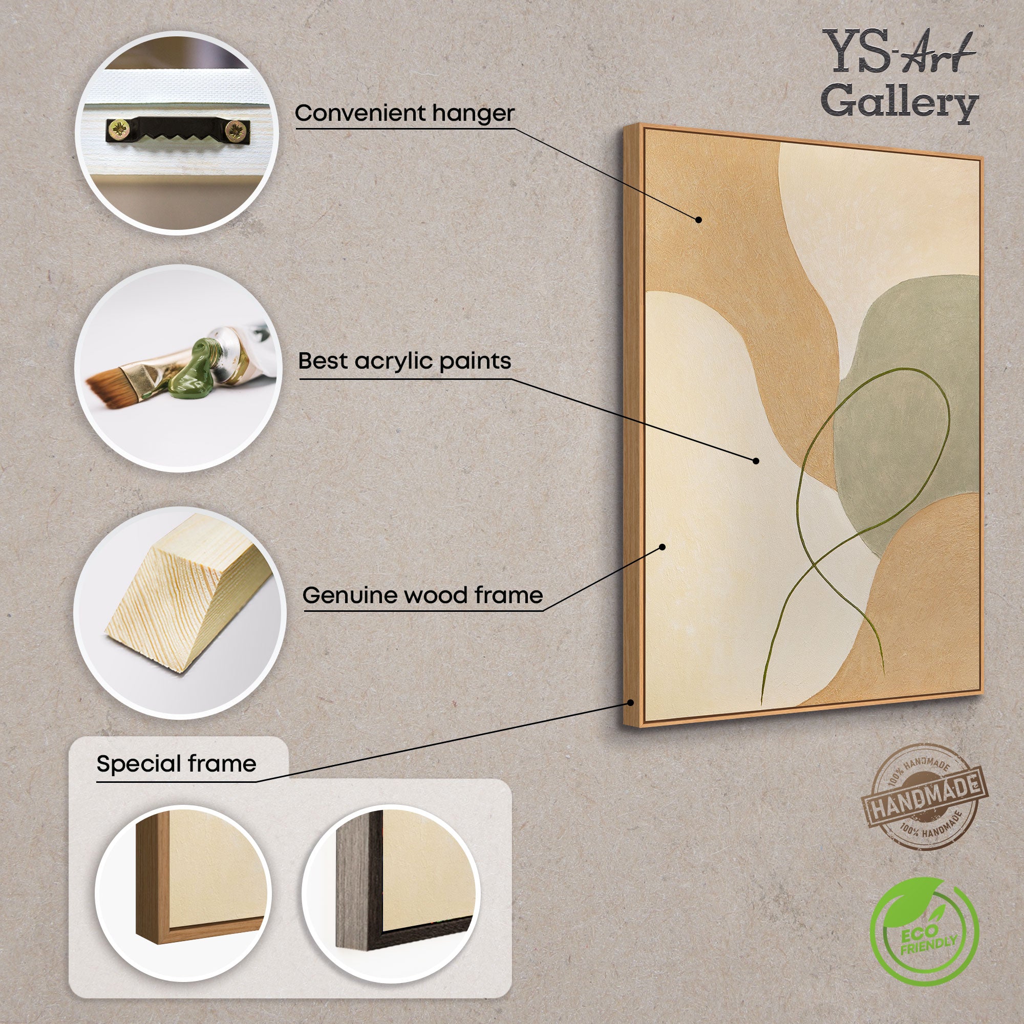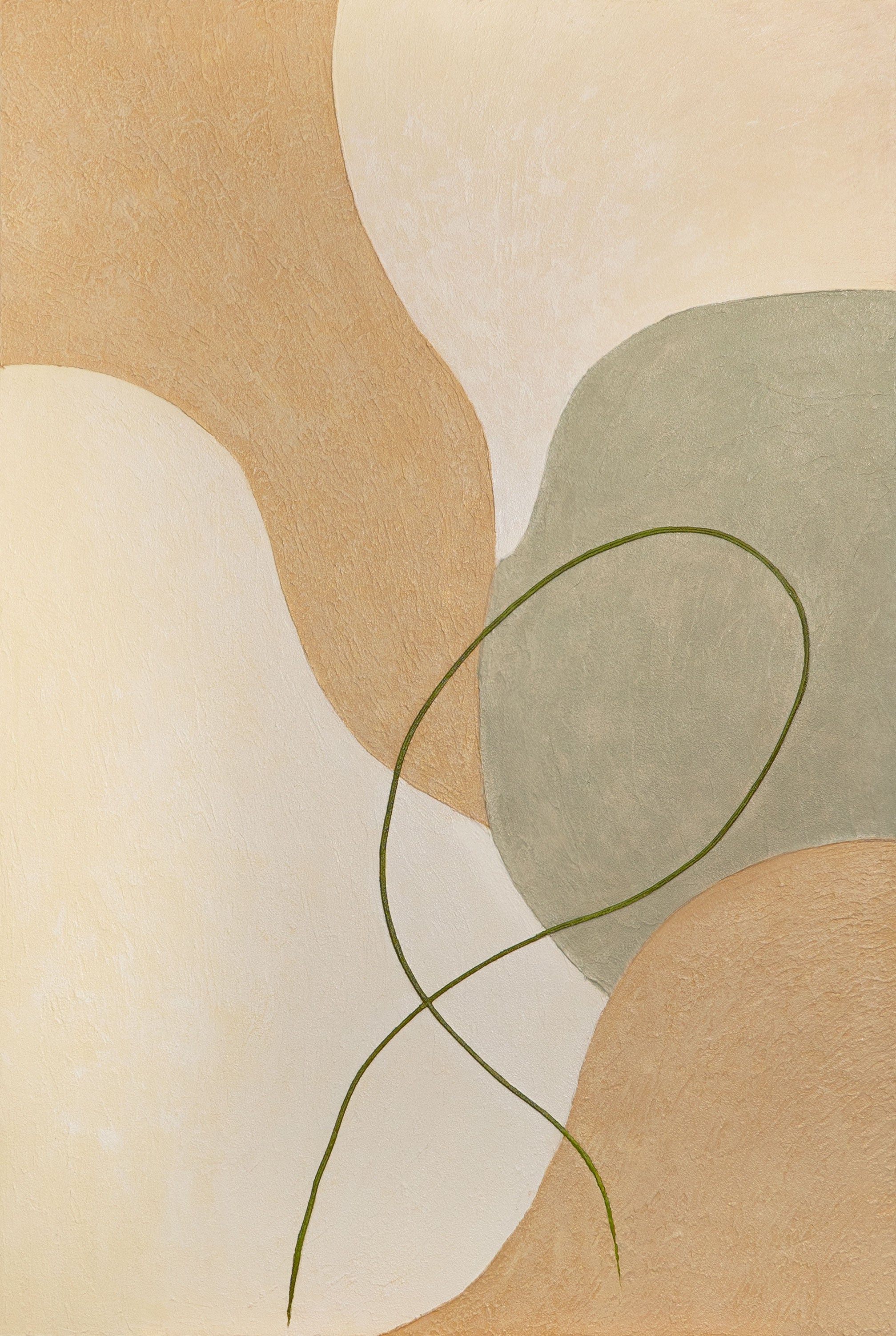 « Entrelacement » est une peinture acrylique réalisée à la main qui captive par la douceur de ses lignes et l'harmonie de ses couleurs. De délicates nuances de beige, des zones crème et une subtile touche de vert créent un mouvement organique et apaisant, à la fois élégant et moderne.