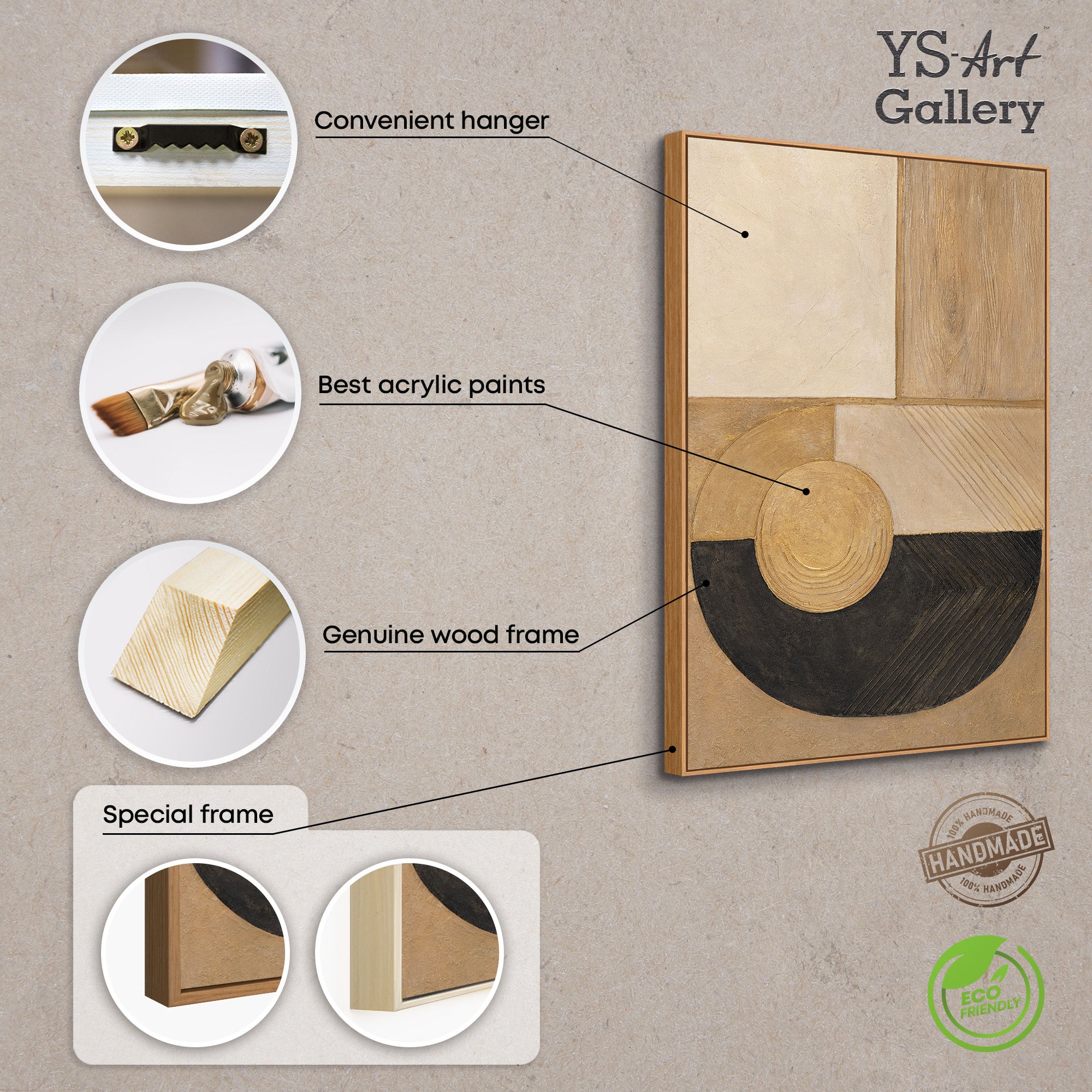 - Farben: Beige Sand Schwarz Gold Naturtöne