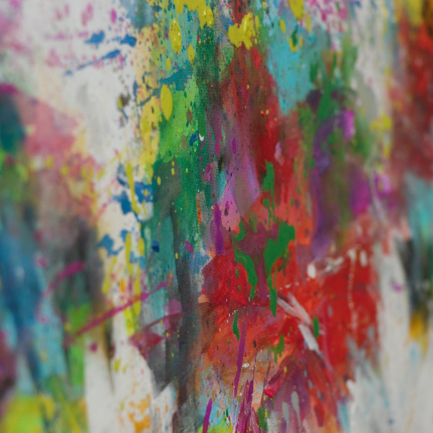 Tauchen Sie ein in die Welt lebhafter und expressiver Kunst mit diesem handgemalten Gemälde. Es zeigt eine dynamische Zusammenstellung von Figuren und Formen in kräftigen Farben, die jede Wand in einen Blickfang verwandeln. Dieses Kunstwerk ist komplett handgefertigt und sorgfältig in einem passenden Rahmen präsentiert, der das Gesamtbild perfekt abrundet.