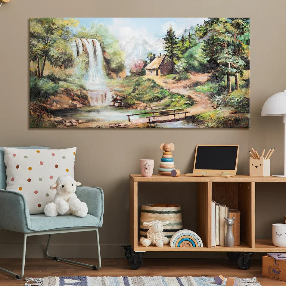 Abstrakte handgemalte acrylbilder auf leinwand "Wasserfall", handgemalte bilder auf leinwand für wohnzimmer.