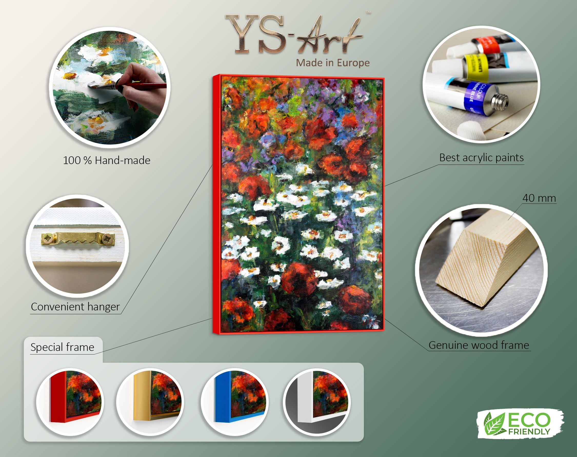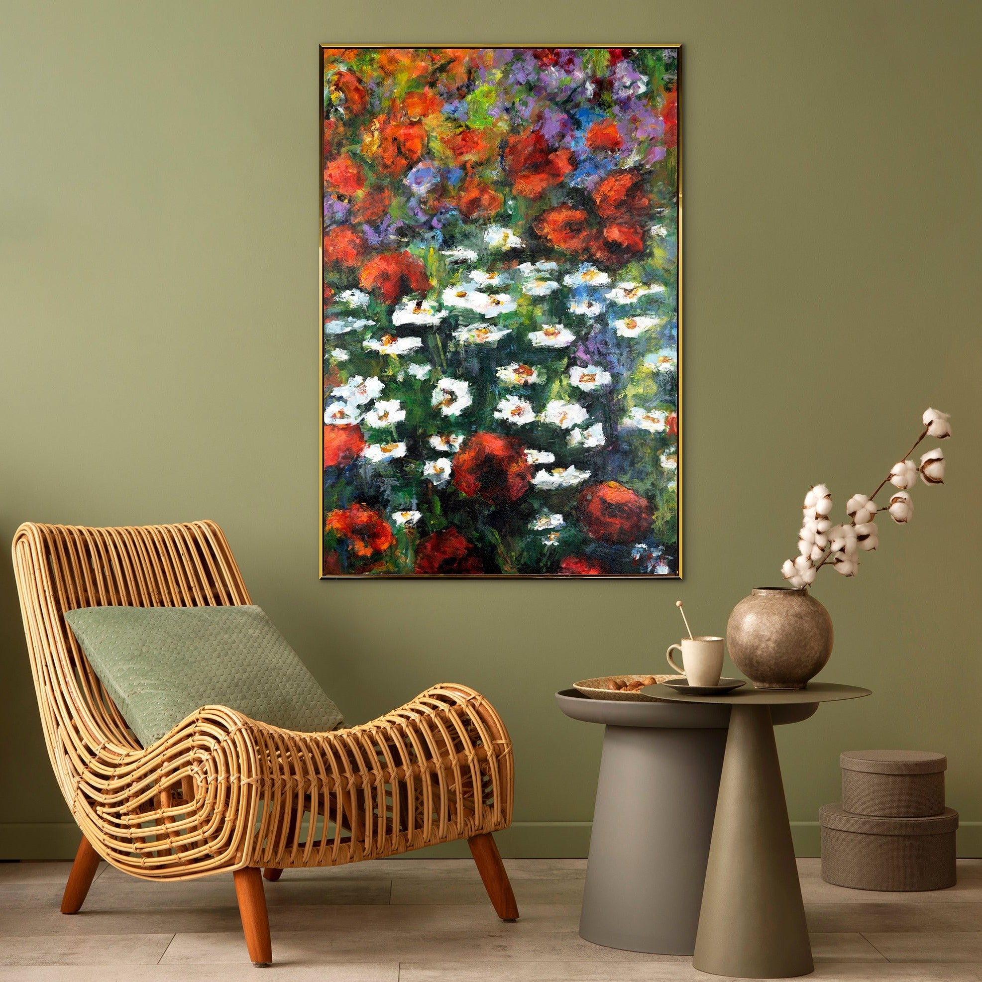 • Handgemalte bilder auf leinwand "Blühende Weiten", wandbilder gerahmt