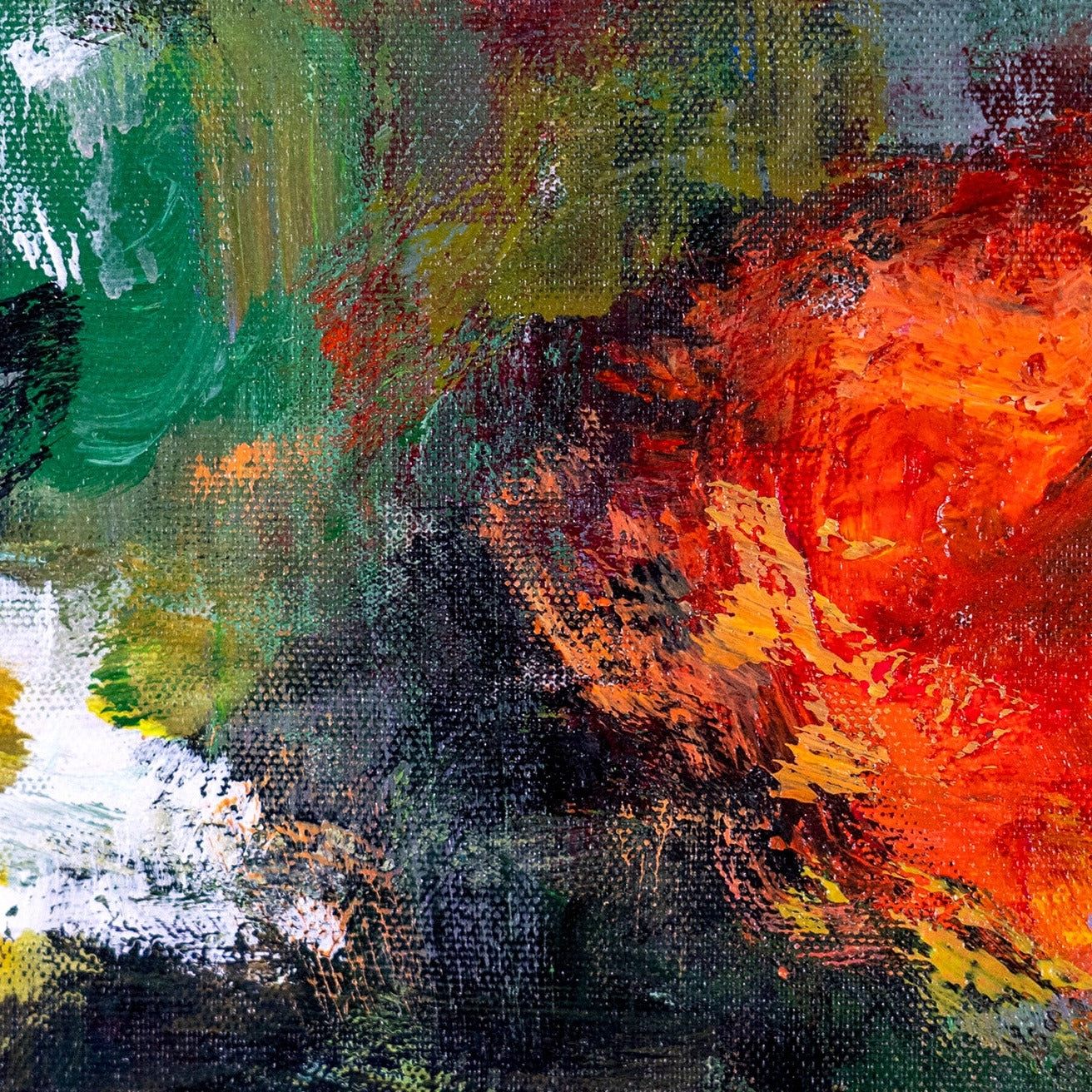 • Struktur-Detail des Acrylauftrags mit roten Blüten