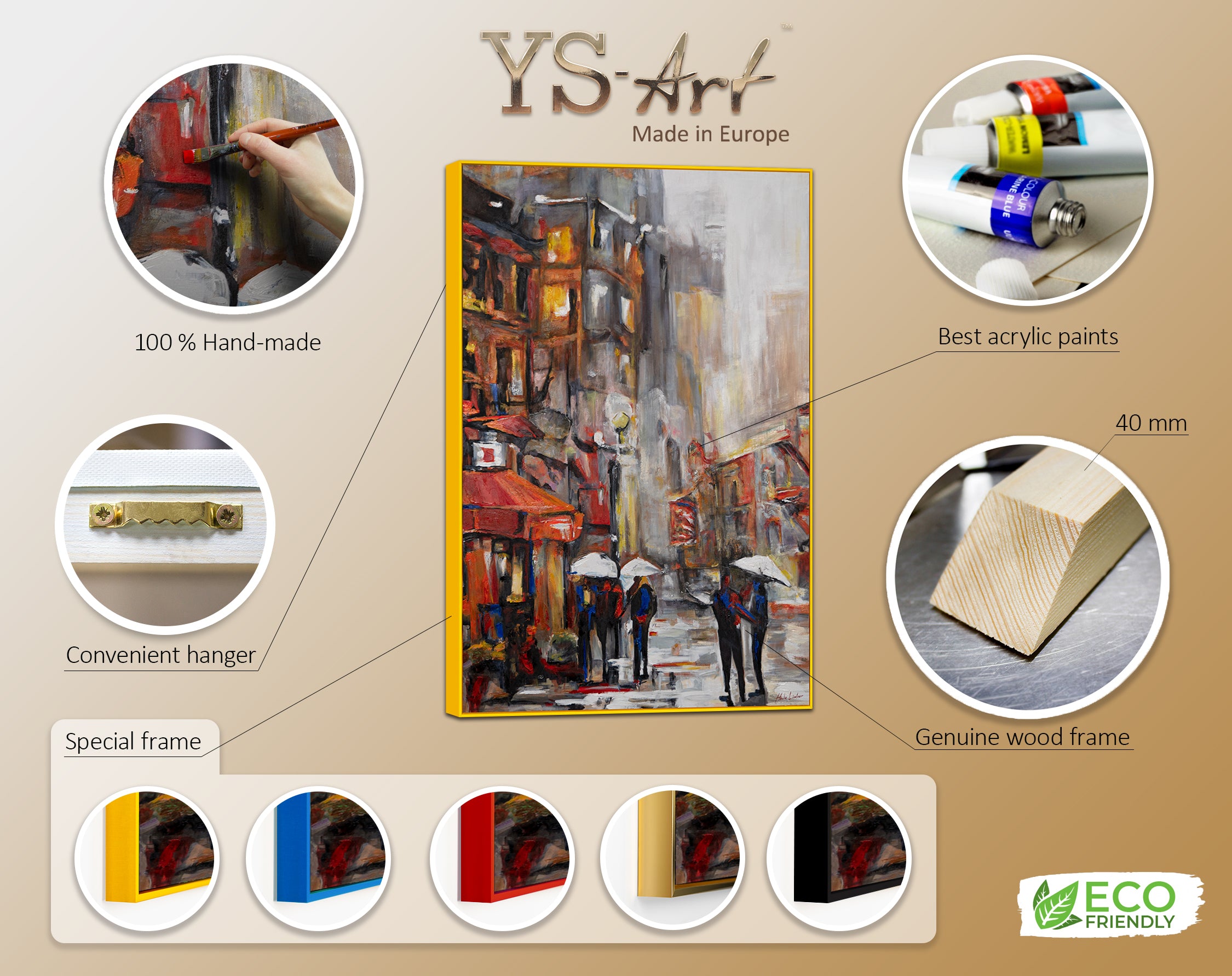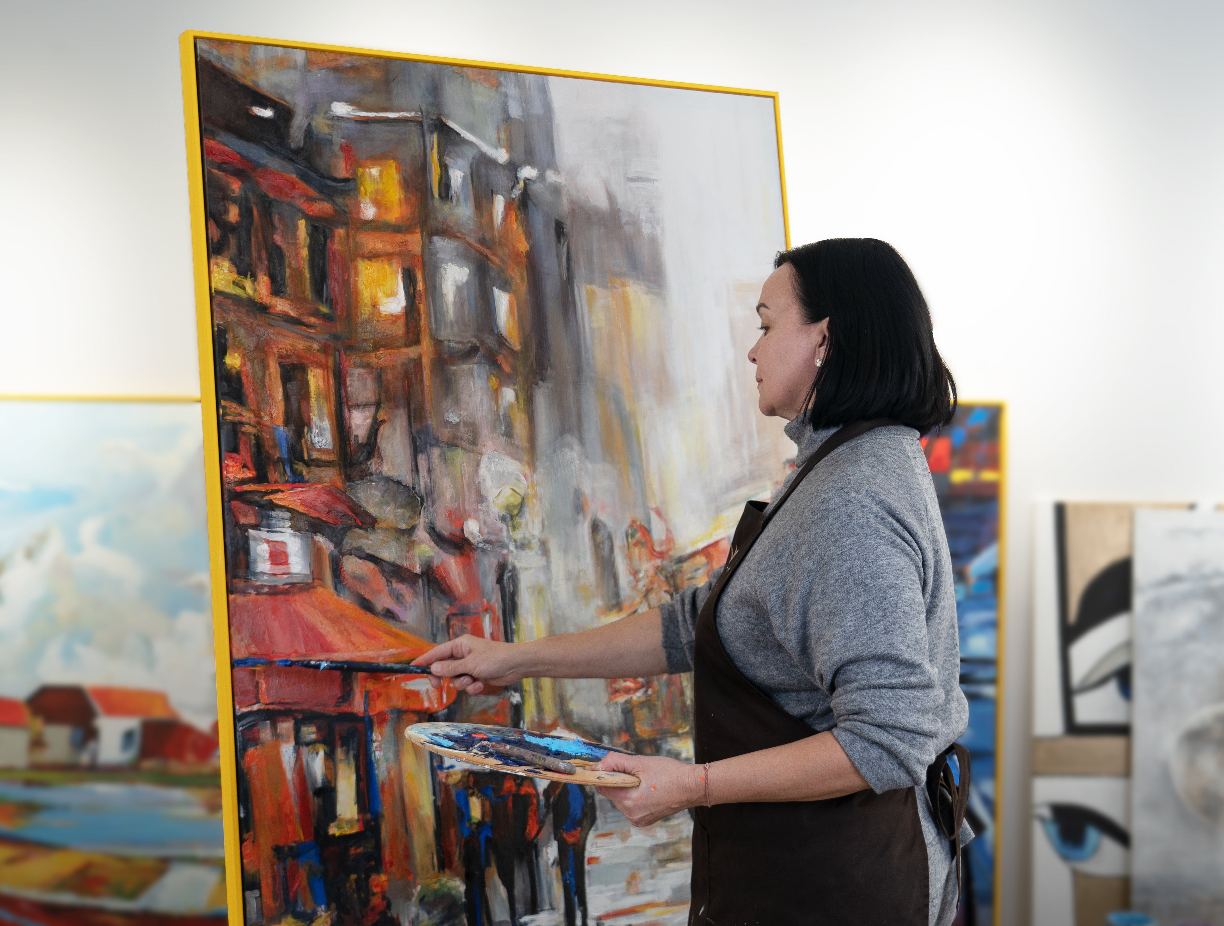 • Handgemalte Bilder auf Leinwand mit Rahmen "Städtische Atmosphäre"