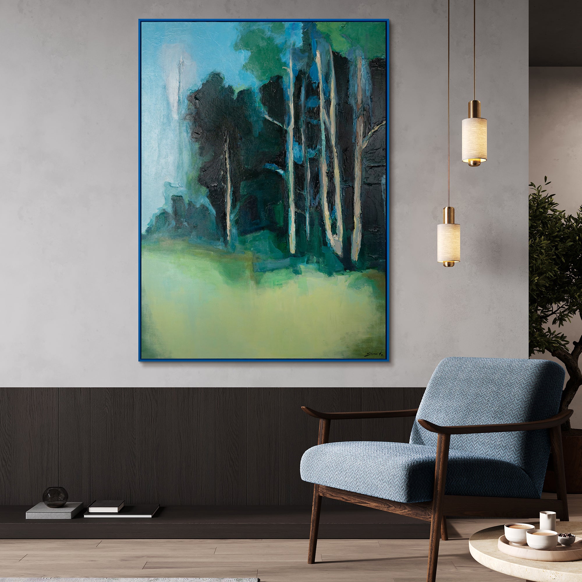 Handgemaltes Waldgemälde Moderne Kunst mit Rahmen Ruhiger Wald