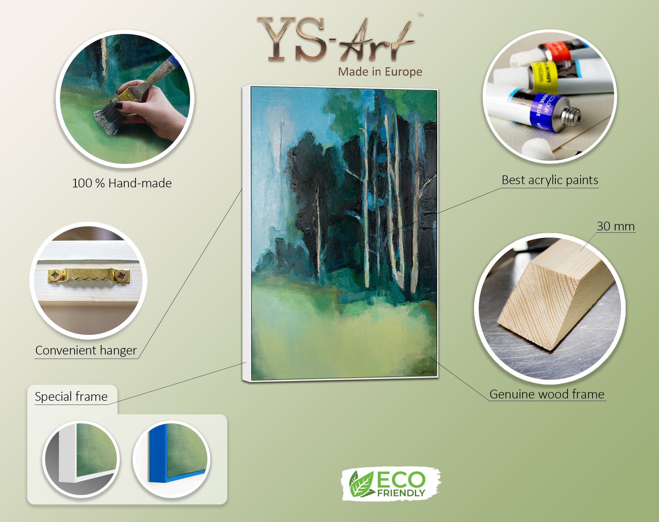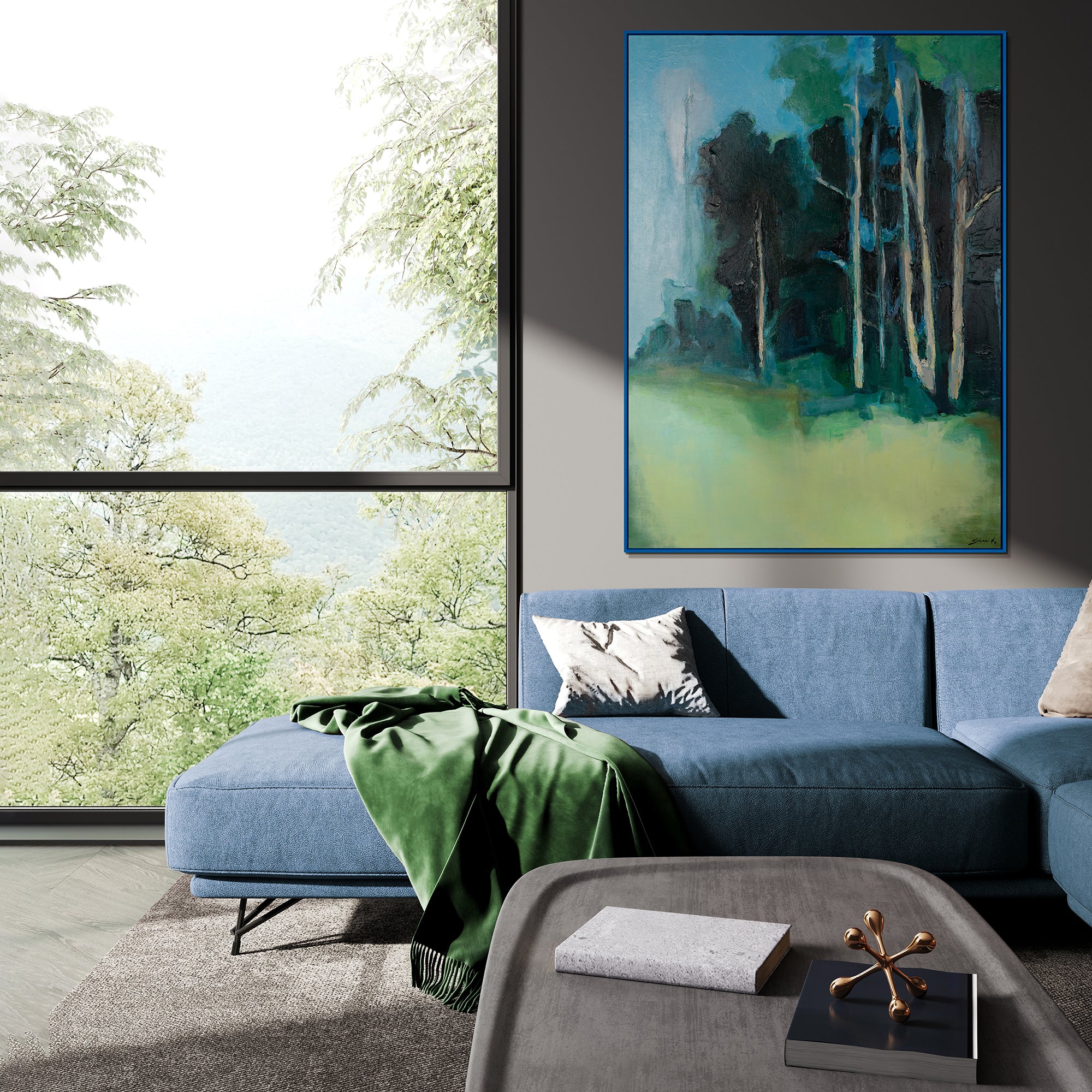 • Handgemaltes Waldgemälde Moderne Kunst mit Rahmen Ruhiger Wald
