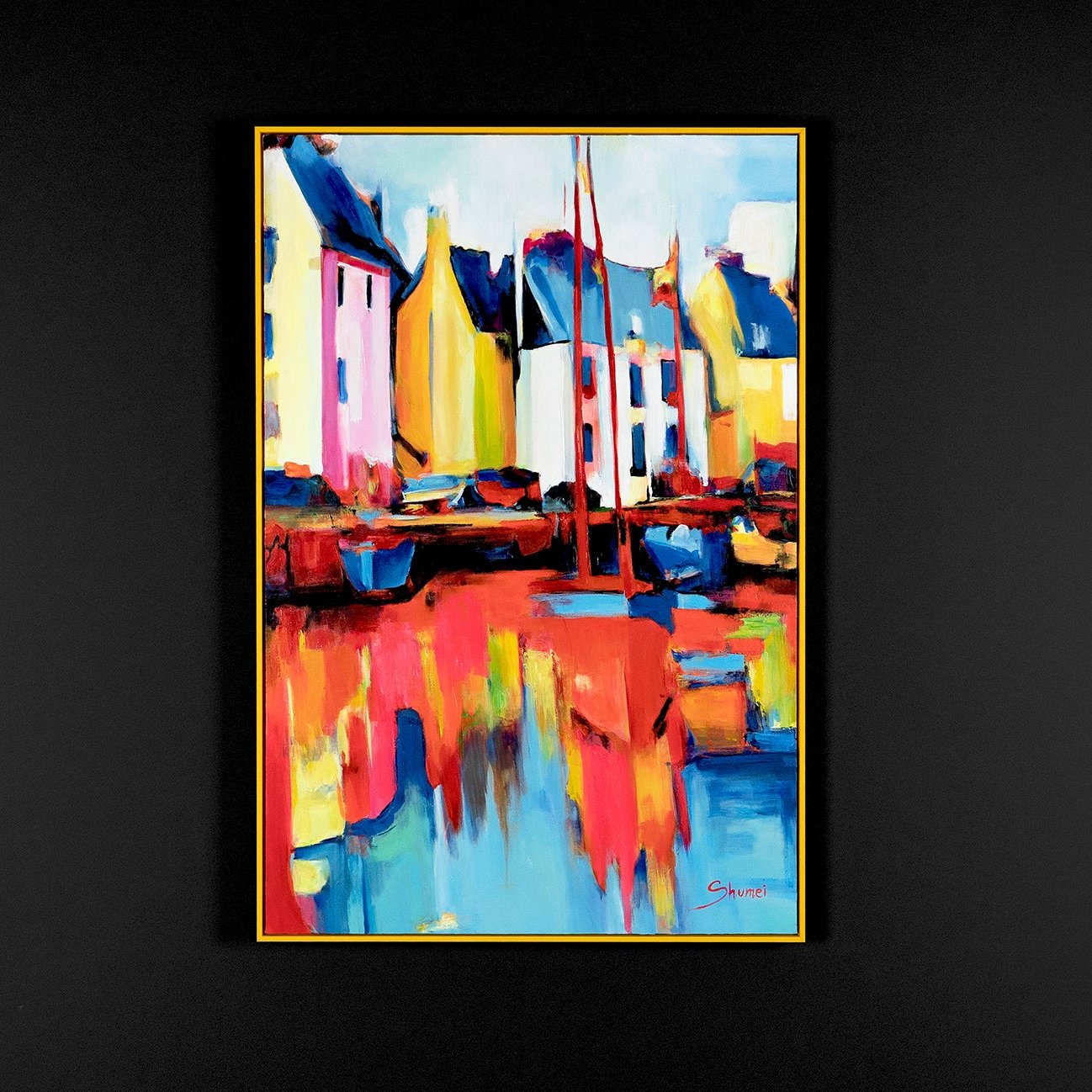 • Detailansicht der Farbschichten und Struktur des Hafenbildes