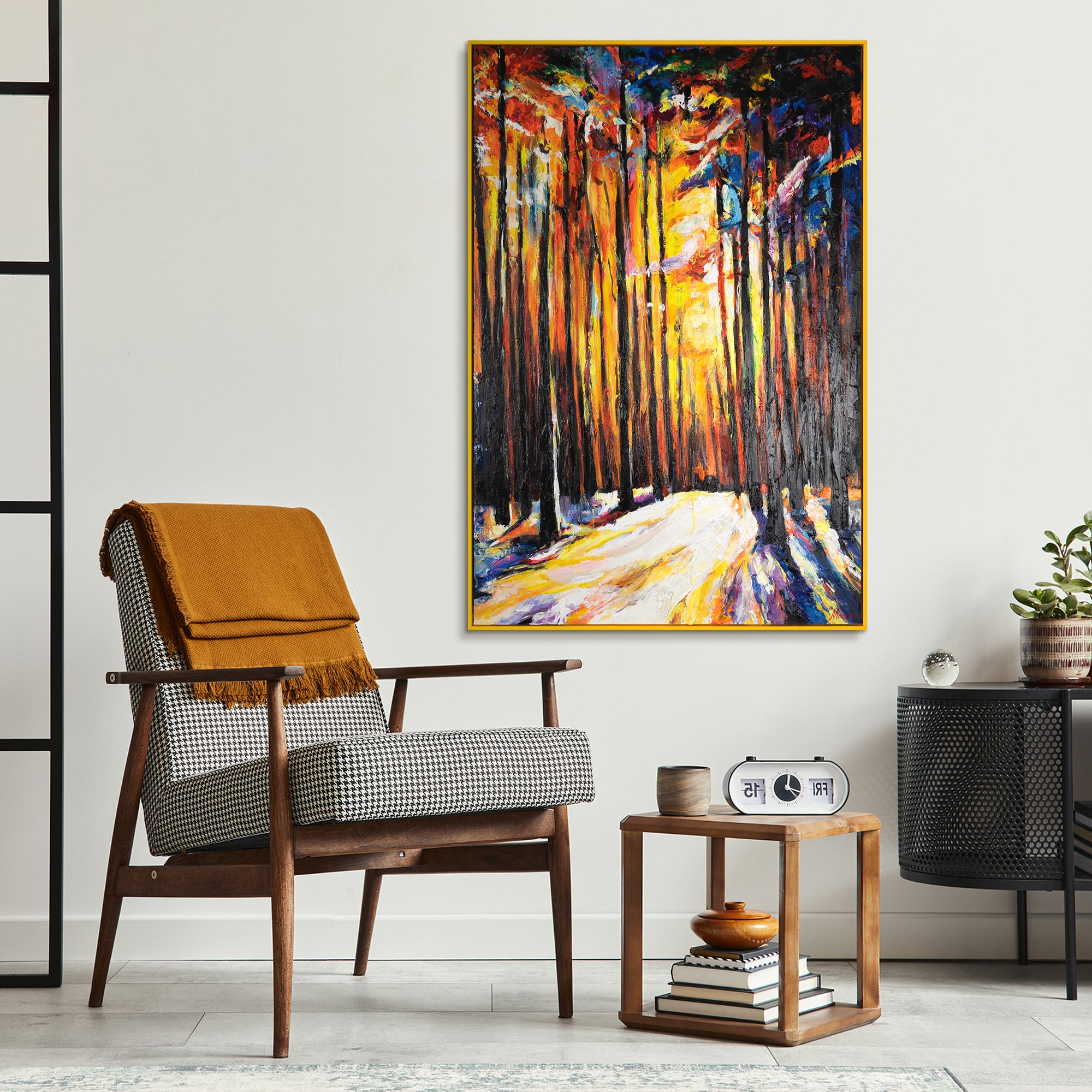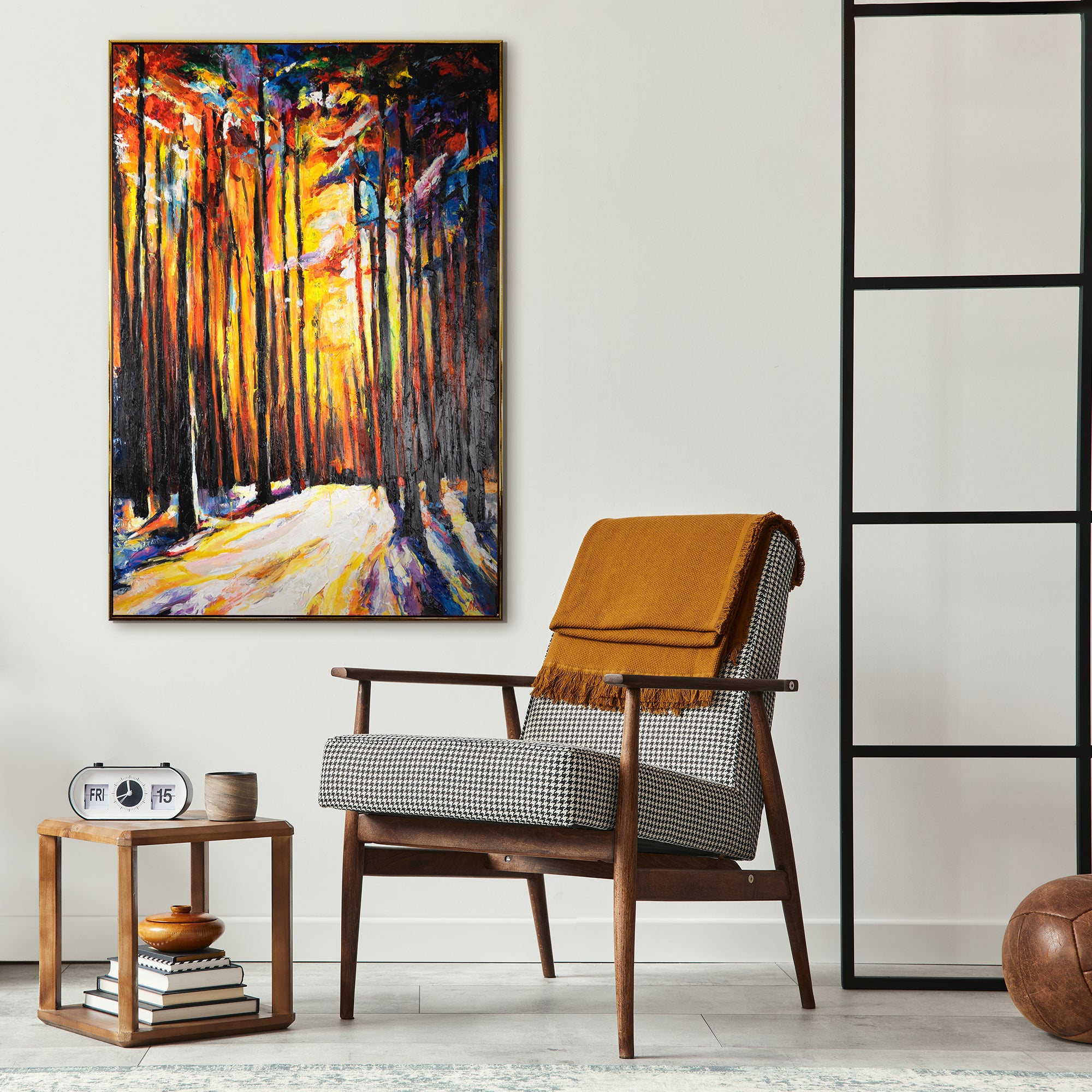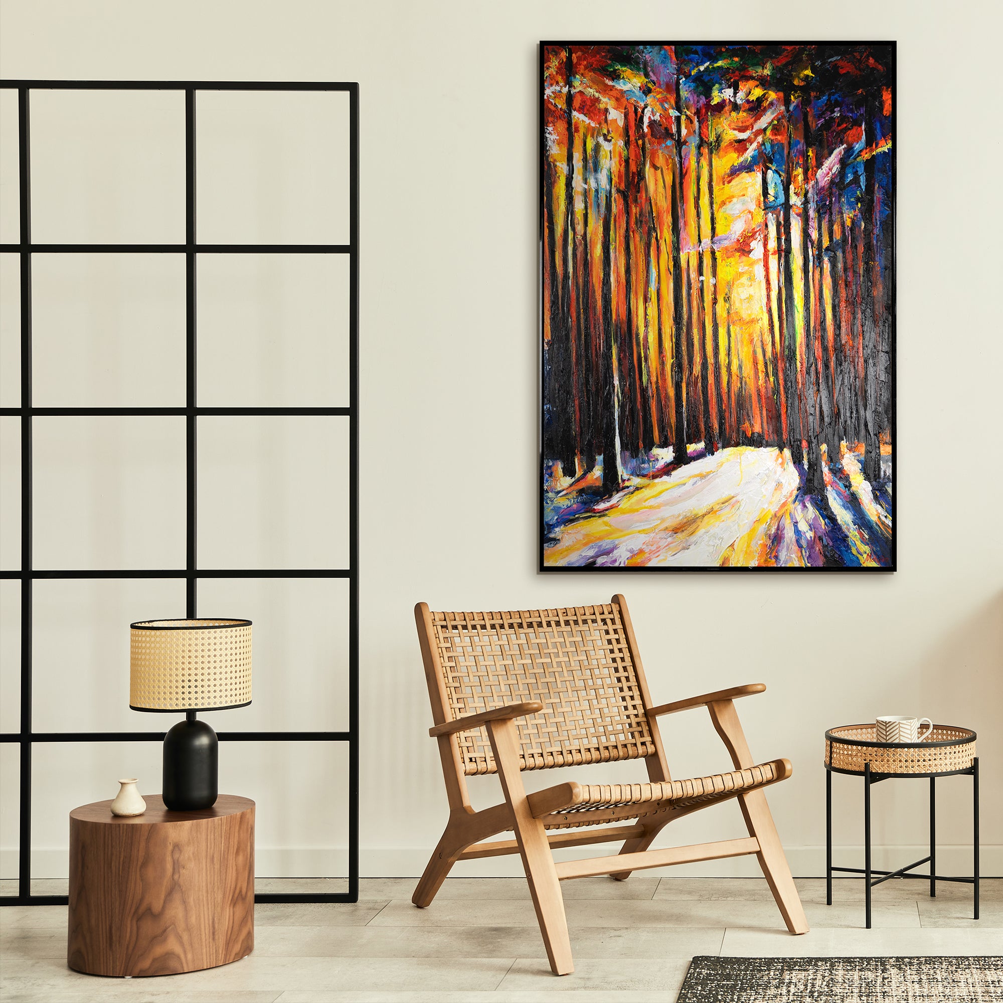 Dieses eindrucksvolle Gemälde mit dem Titel 'Lichtdurchfluteter Waldweg' verleiht jedem Raum eine lebendige und farbenfrohe Atmosphäre. Es handelt sich um ein handgemaltes Acrylbild, das den Zauber eines Waldes in einer abstrakten Darstellung einfängt.