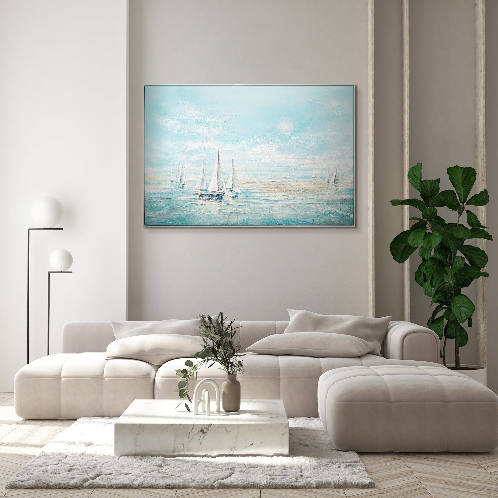 • Wenn man sich dieses Gemälde ansieht, scheint es, als würde man frische Meeresluft atmen und die leichte Kühle eines frühen Sommermorgens genießen. Dieses Kunstwerk wird Sie nicht nur an die warme Sommerzeit erinnern, sondern auch Ihnen eine angenehme Atmosphäre im Haus schaffen.