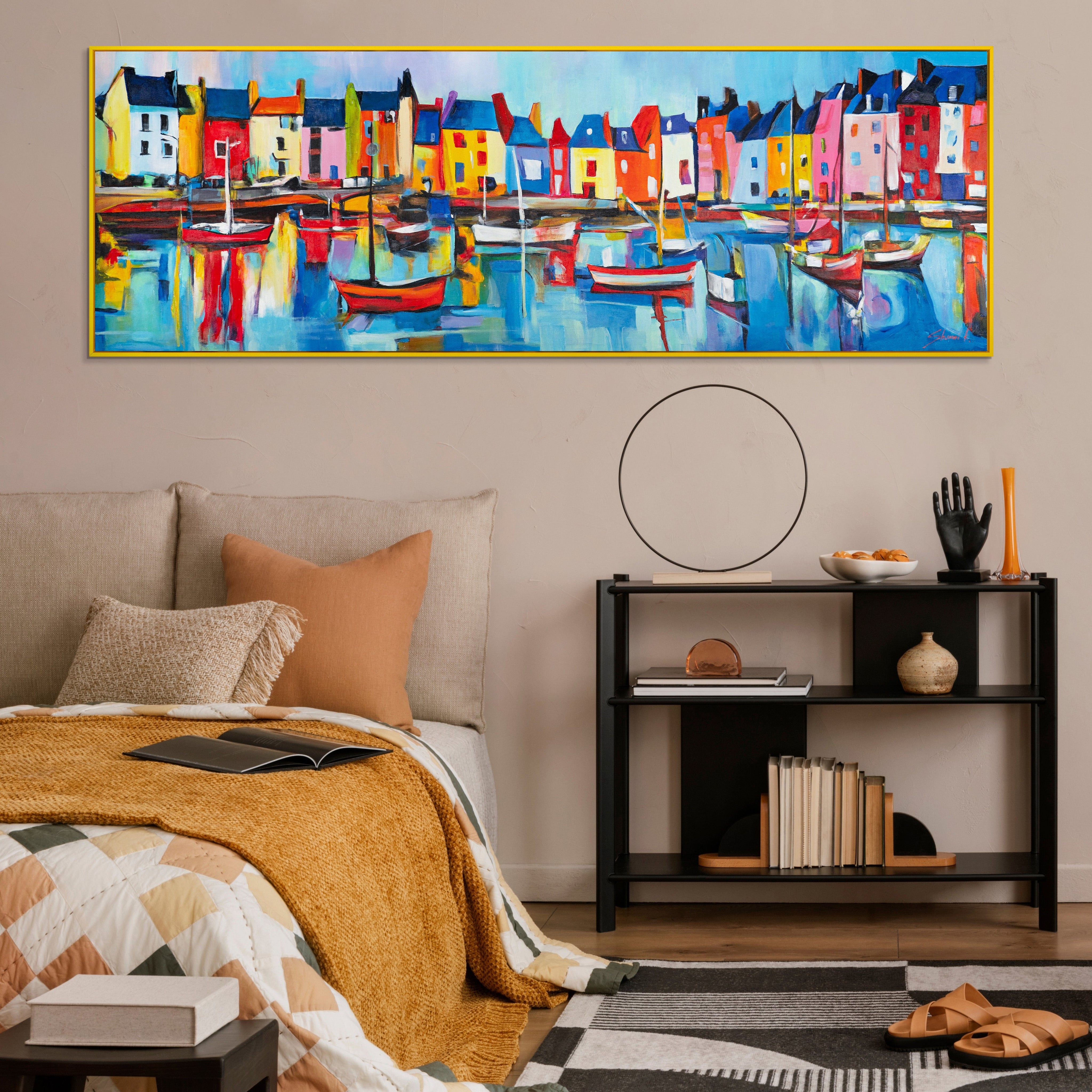 Moderne Kunst "Lebhafter Hafen" mit Rahmen Wanddeko Wohnzimmer