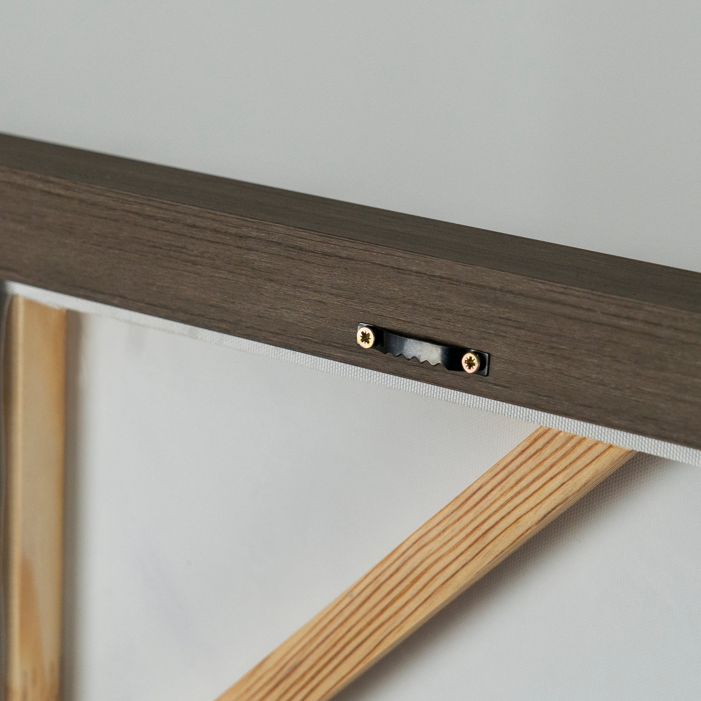 • Der Keilrahmen ist bereits mit 2 Metallverschlüssen ausgestattet - so können Sie das Gemälde direkt nach dem Auspacken aufhängen.