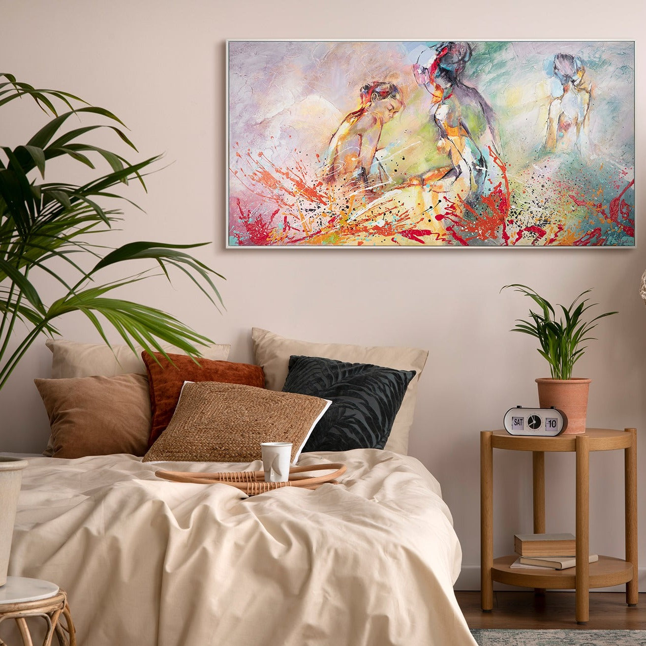 • Erhältlich in 4 verschiedenen Größen: 100x50 cm, 120x60 cm, 140x70 cm, 160x80 cm. Auf Anfrage kann das Gemälde auch in anderen Größen gemalt werden.