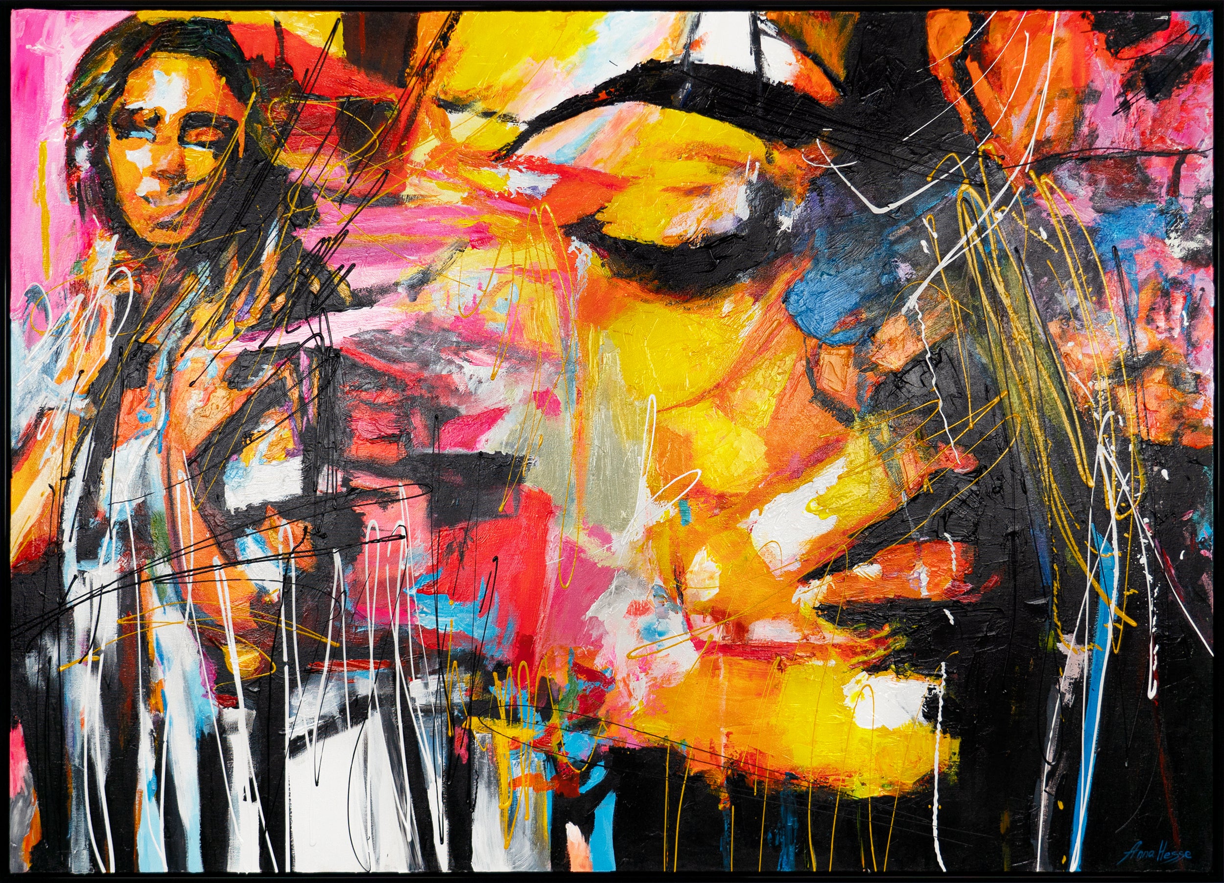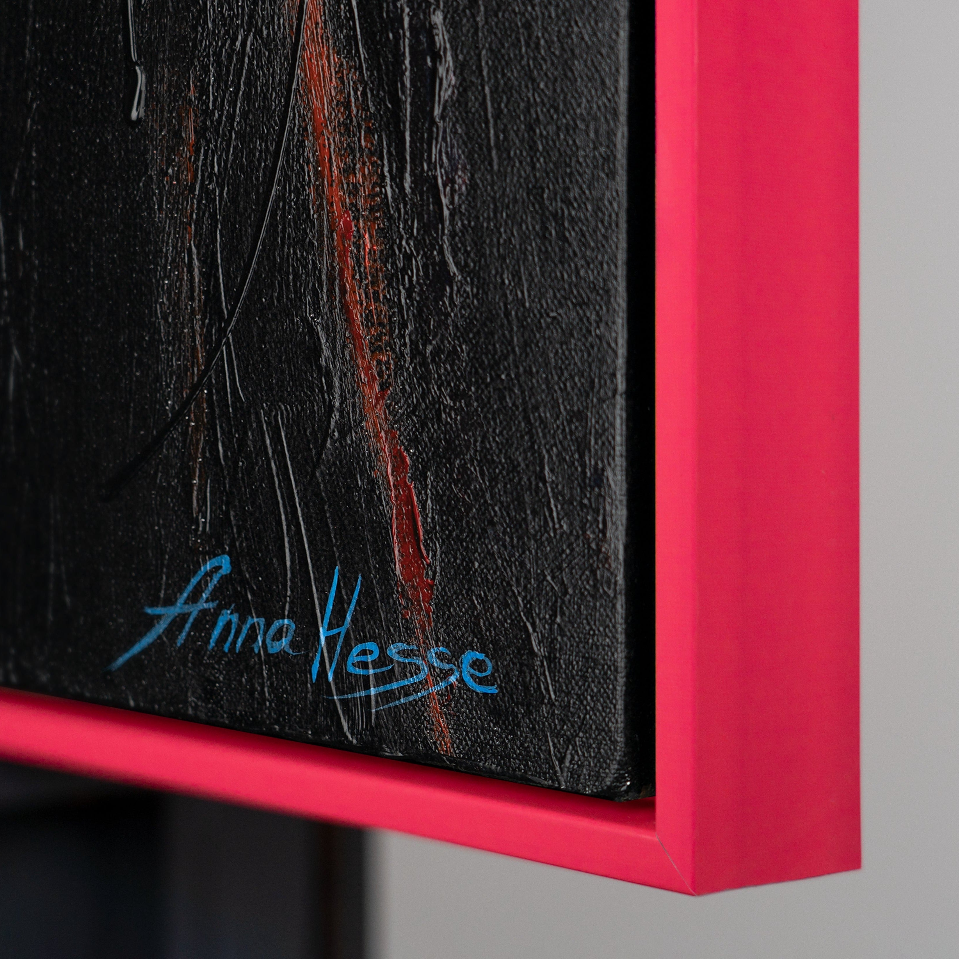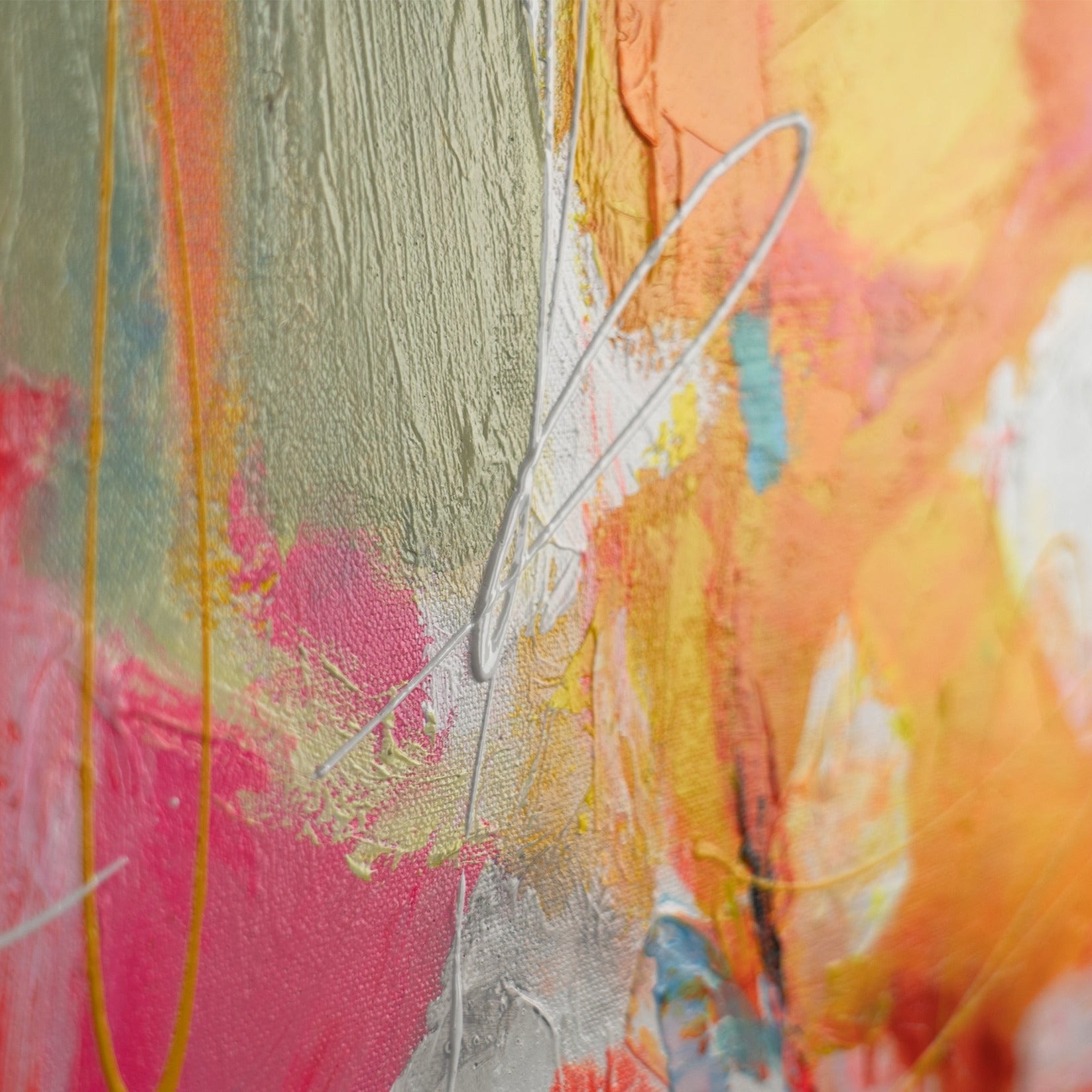 Bereichern Sie Ihr Zuhause oder Büro mit diesem farbenfrohen, abstrakten Kunstwerk, das durch lebhafte Rot-, Gelb- und Pinktöne eine dynamische und moderne Komposition darstellt. Das Bild besticht durch kräftige Kontraste und ausdrucksstarke Pinselstriche. Es ist 100% handgemalt und wird durch einen eleganten Rahmen hervorgehoben.