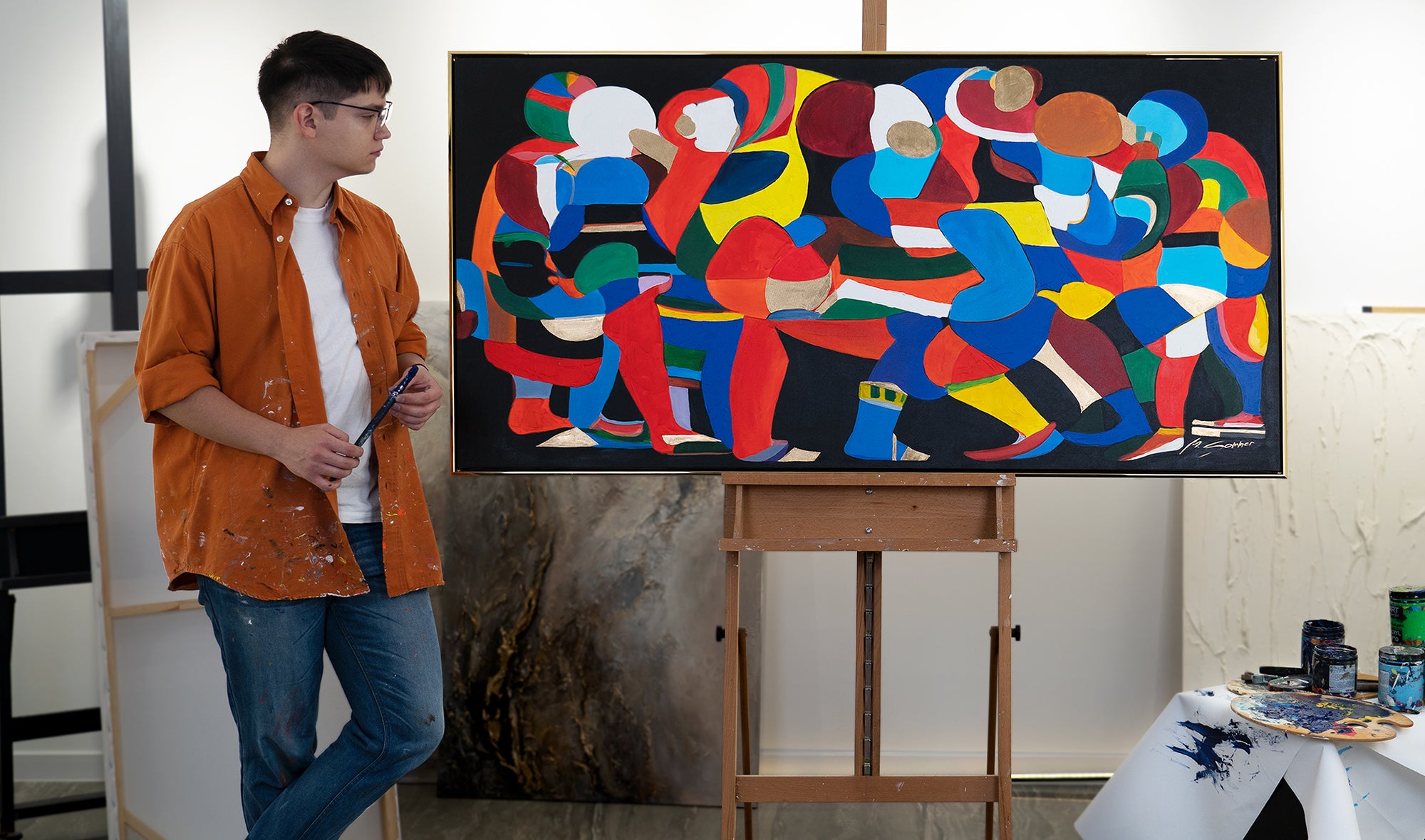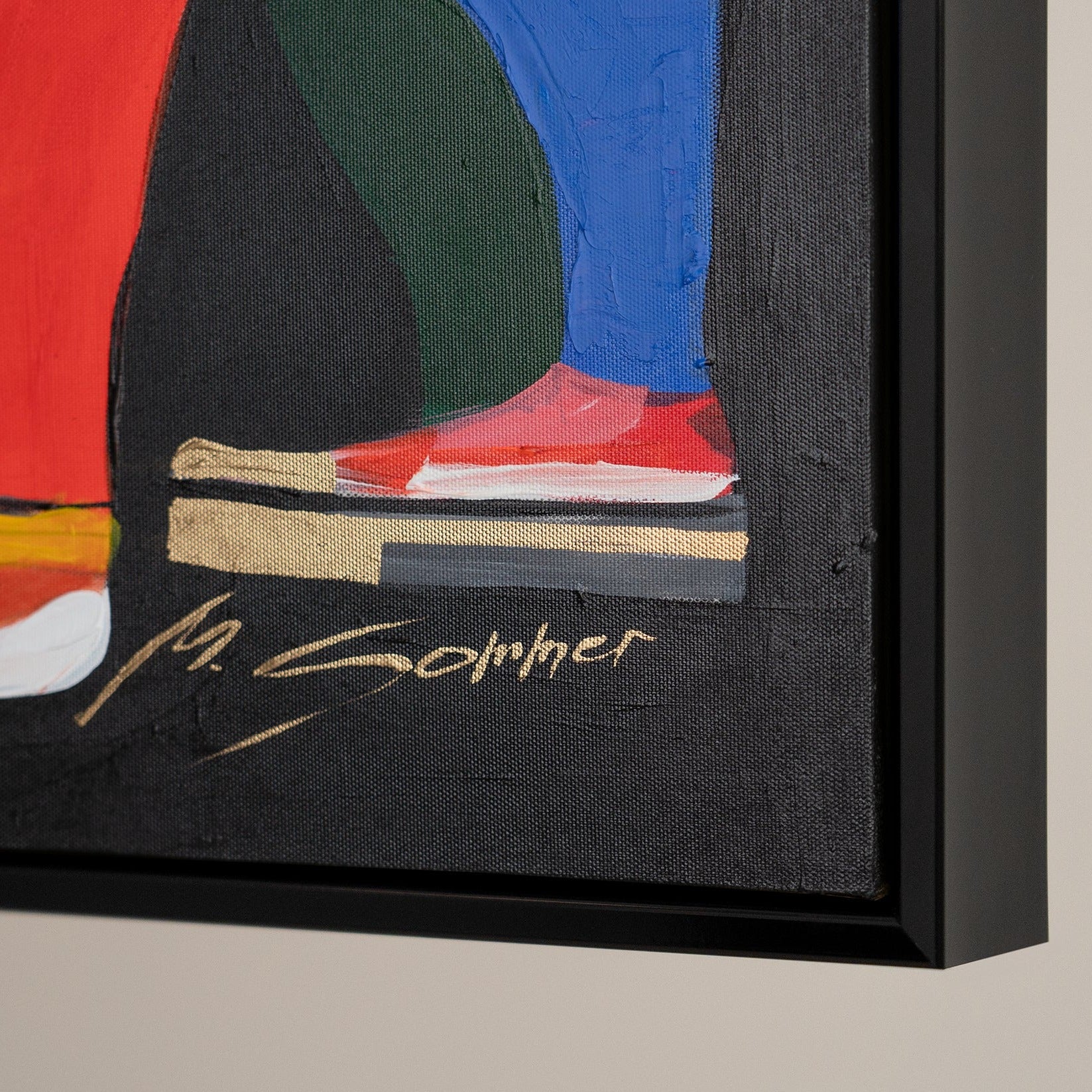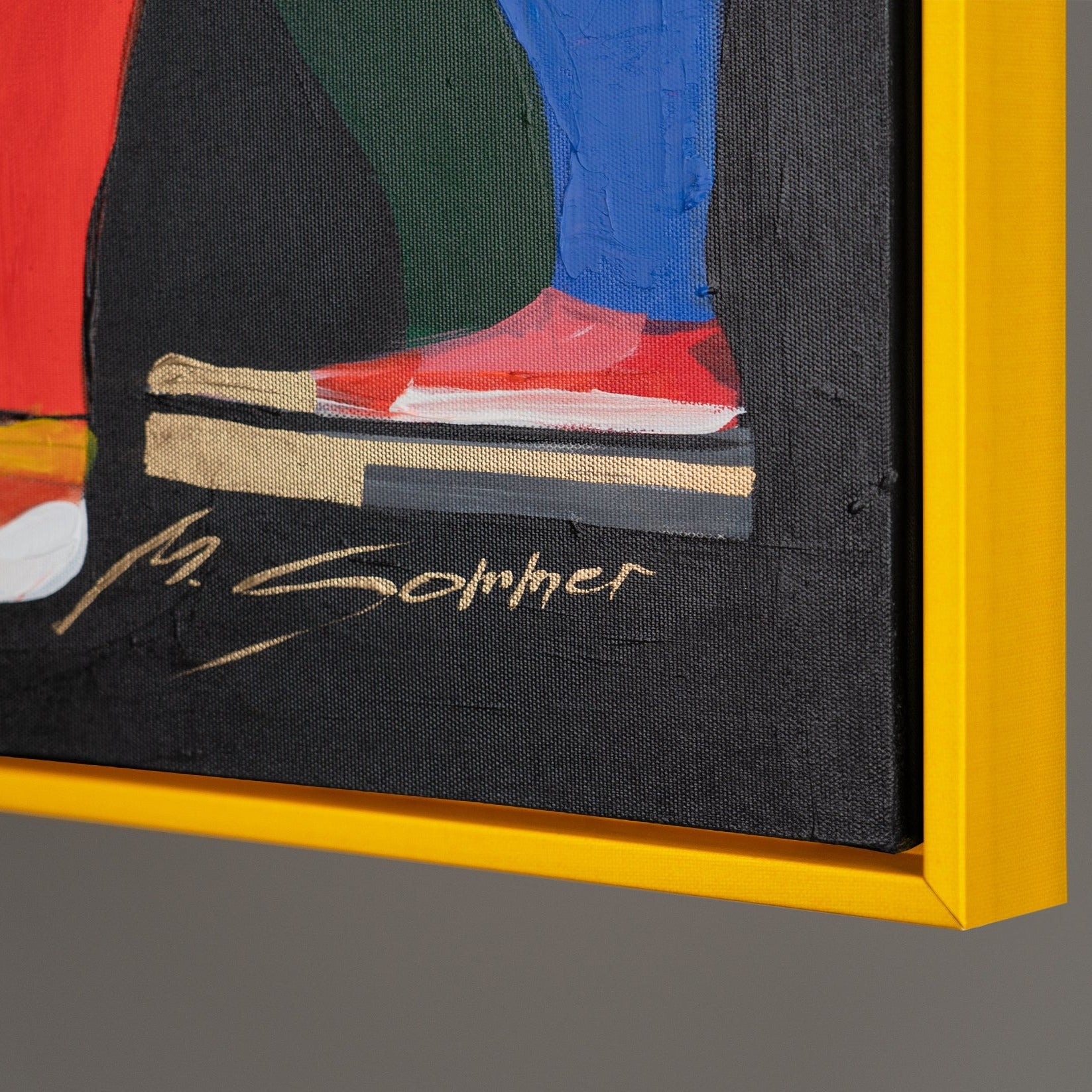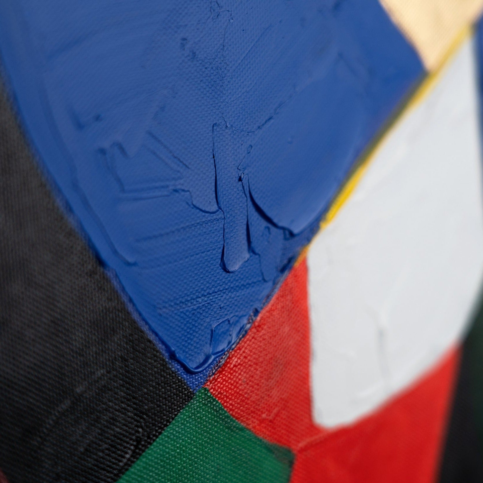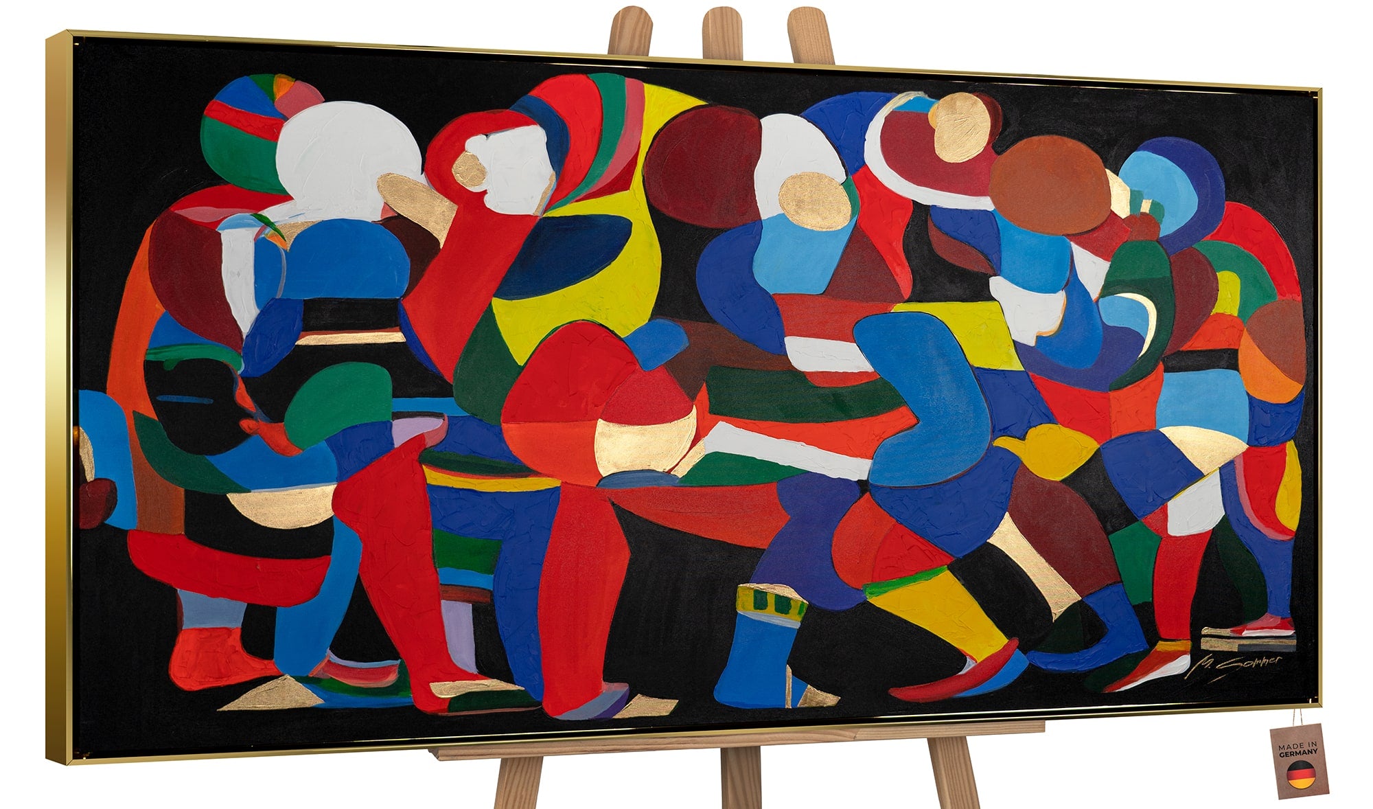 Dieses farbenfrohe Leinwandbild besticht durch klare Linien und lebendige Farbkombinationen. Das abstrakte Motiv wurde sorgfältig von Hand gefertigt und zeigt eine dynamische Szene, die jedem Raum eine moderne und künstlerische Note verleiht. Der mitgelieferte Rahmen sorgt für eine klare Präsentation und lässt das Kunstwerk an jeder Wand leuchten.