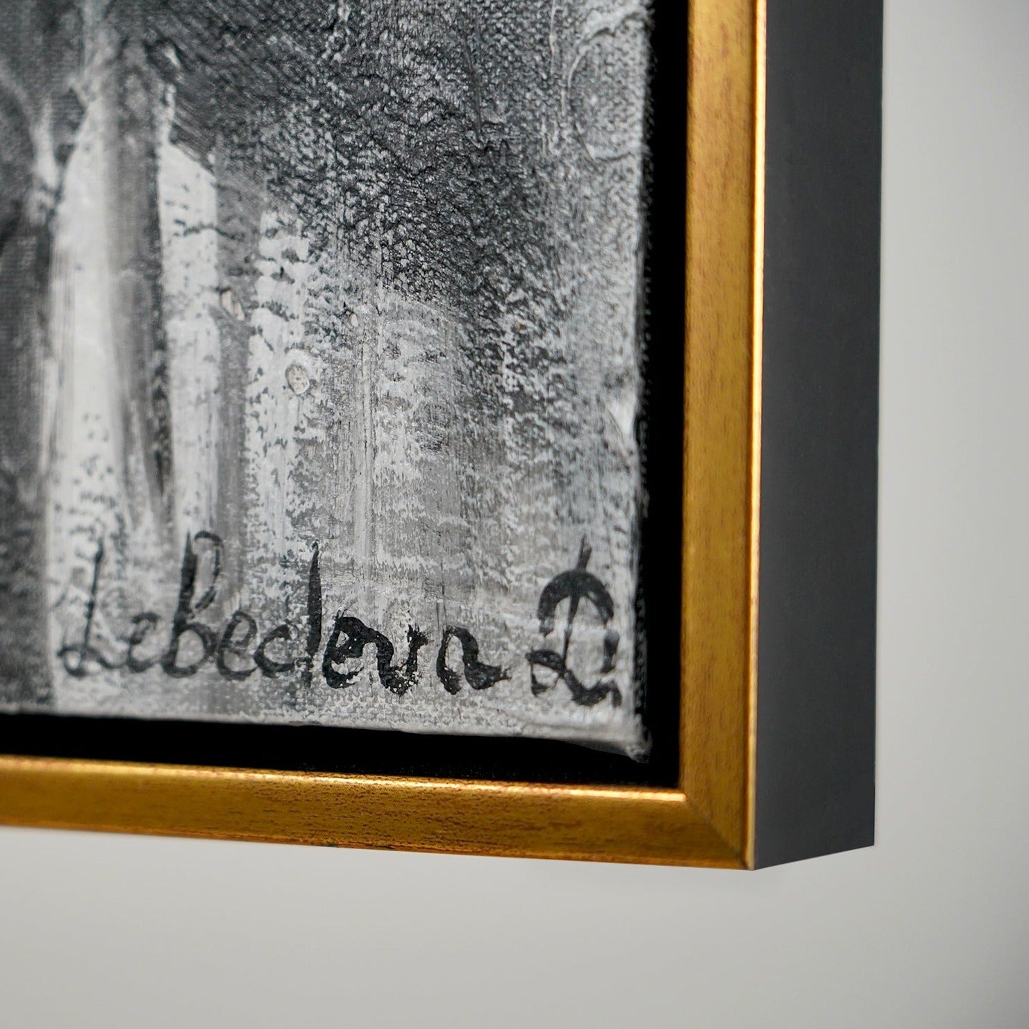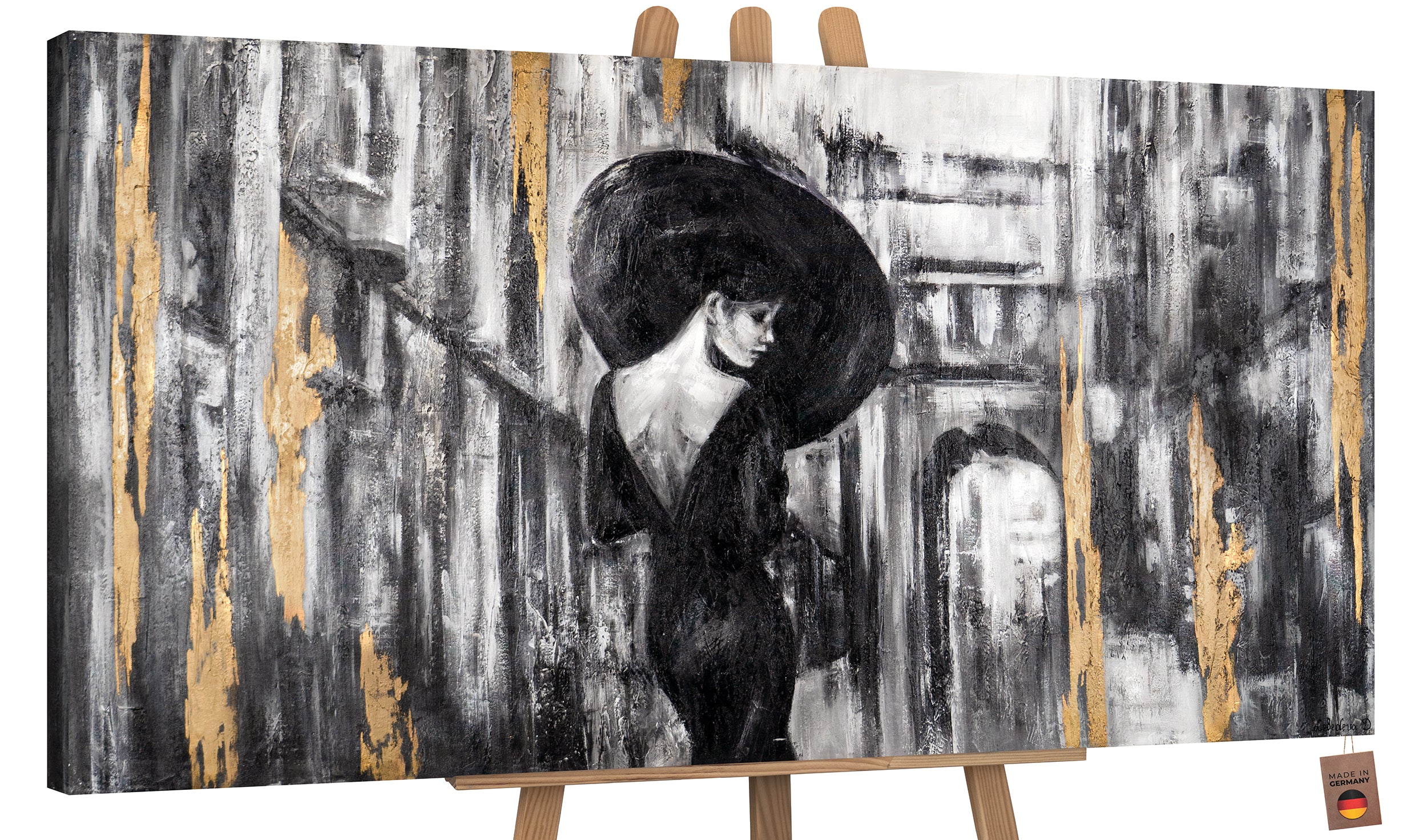 Die nicht triviale Handlung dieses Gemäldes gibt Anlass zum Nachdenken - worüber ist diese unbekannte Frau traurig, wohin geht sie, was ist ihre Geschichte? Die Handlung ist wie aus einem guten alten Film, den man sich immer wieder ansehen möchte. Das Gemälde wurde mit Acrylfarben gemalt und mit Blattgold veredelt.