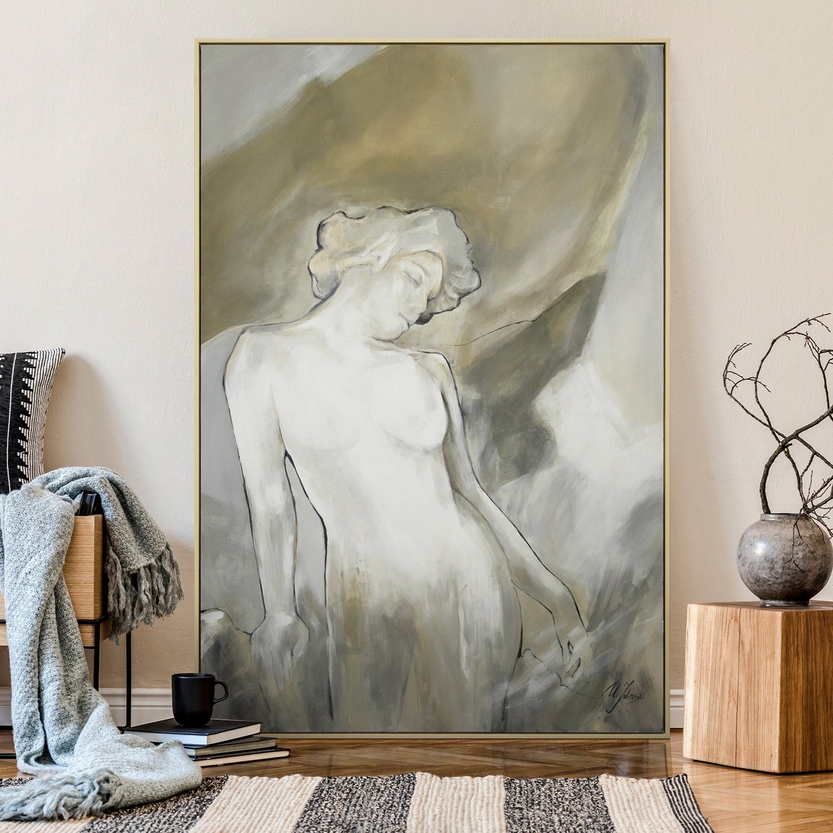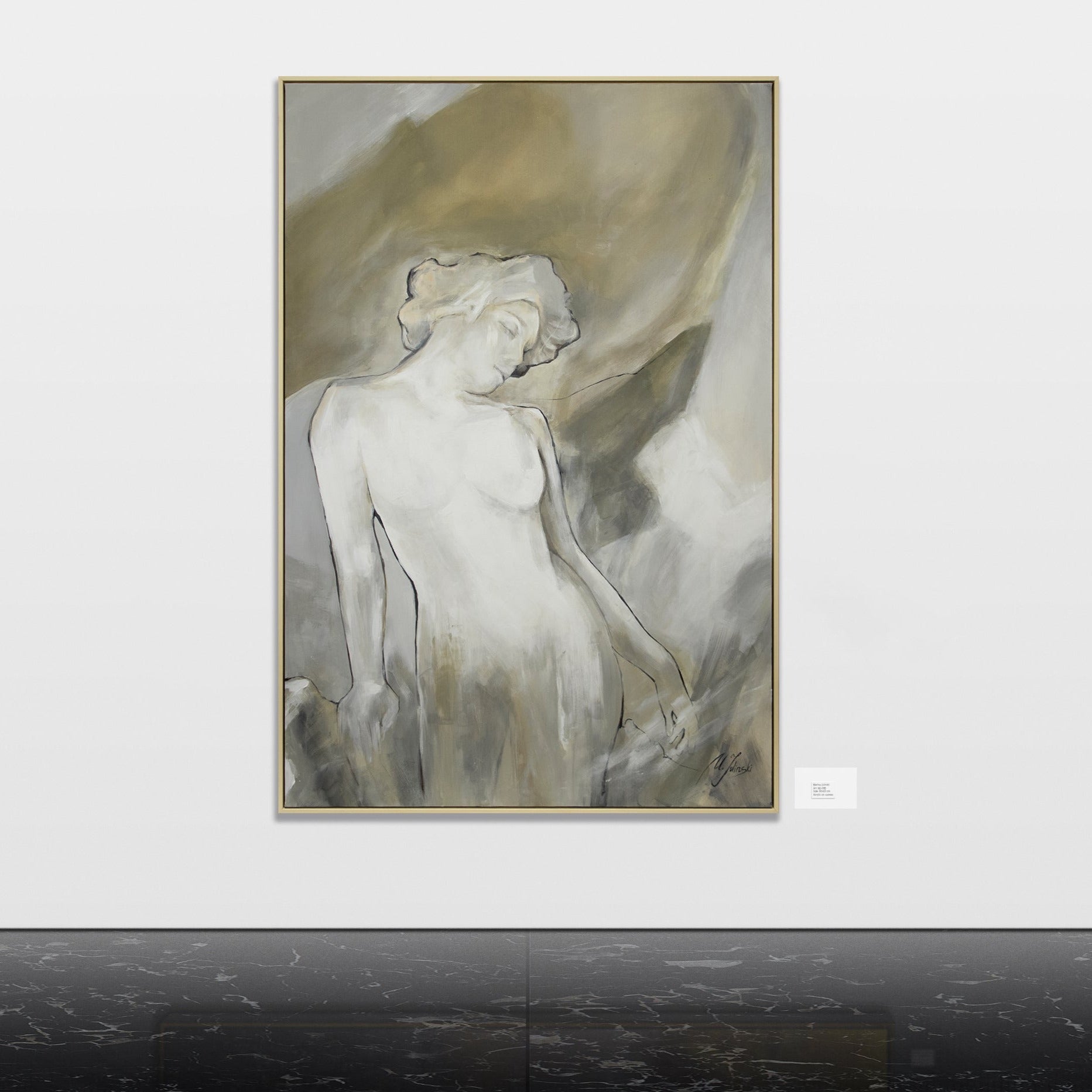 • Strukturierte Acrylmalerei Frau in Grau Beige auf Leinwand