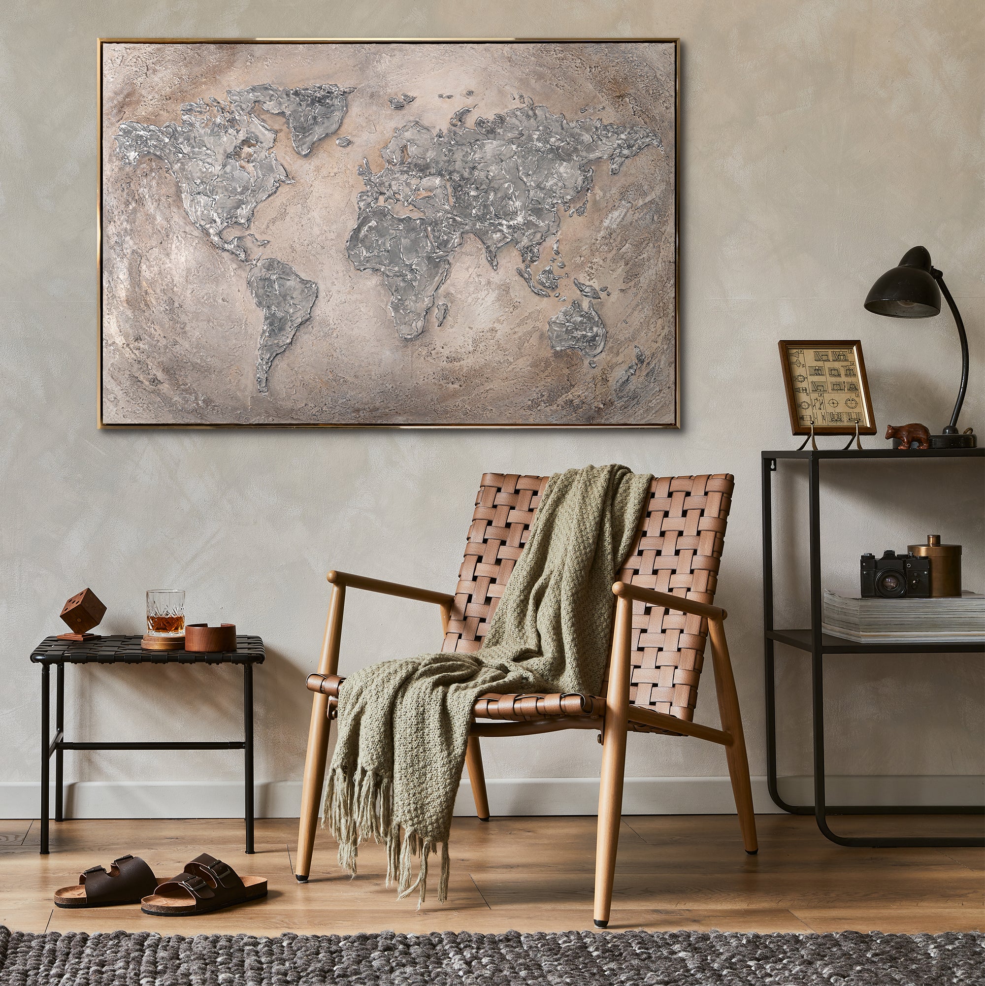 • Handgemalte Acrylmalerei Weltkarte Relief Modern