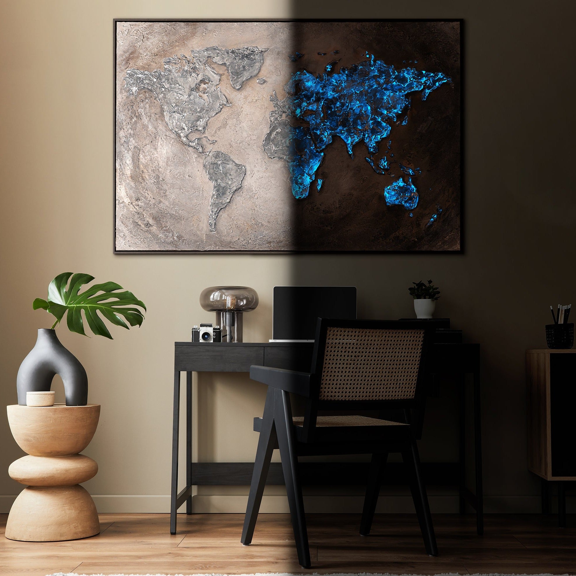 • Acrylbild Weltkarte Relief Handgemalt Modern Deko
