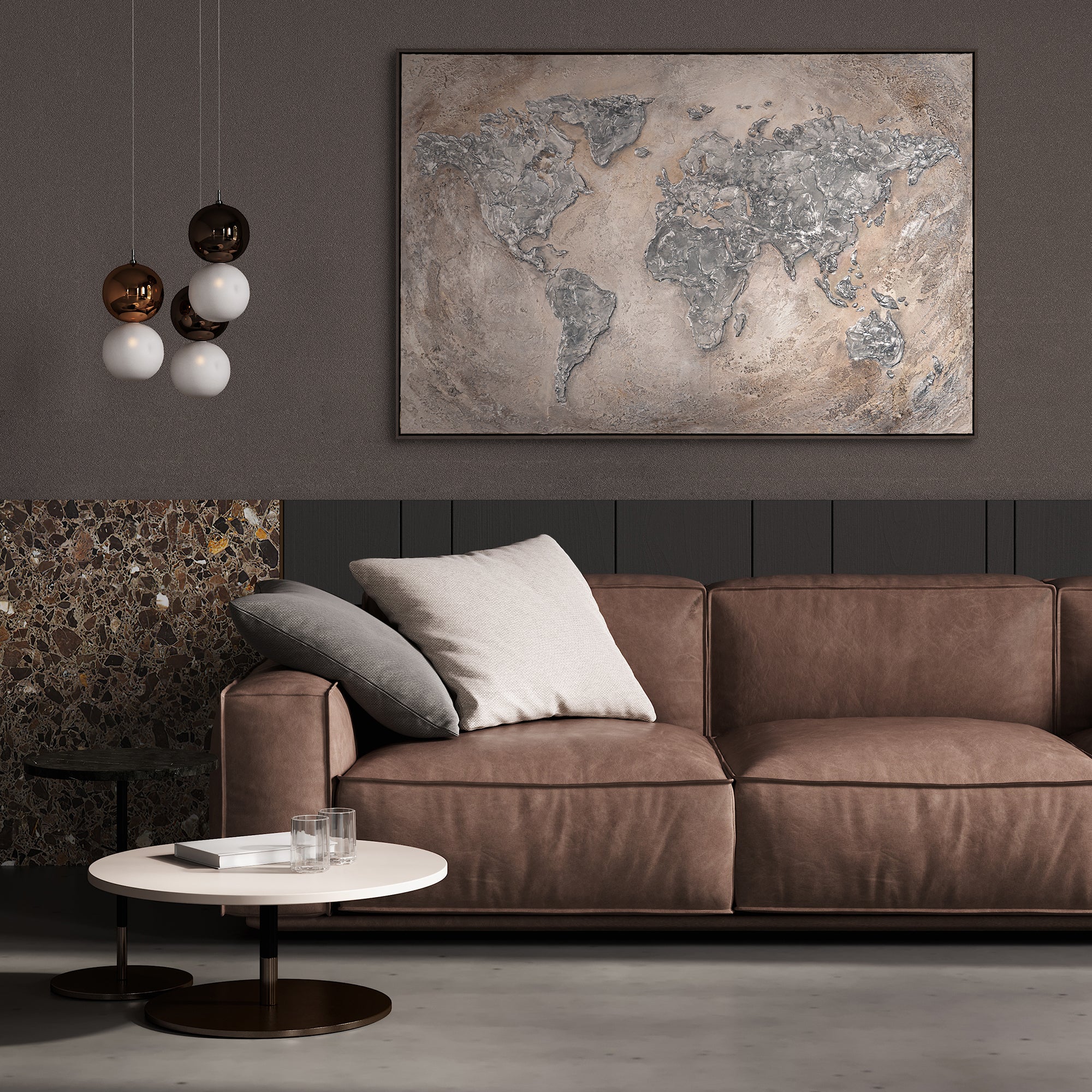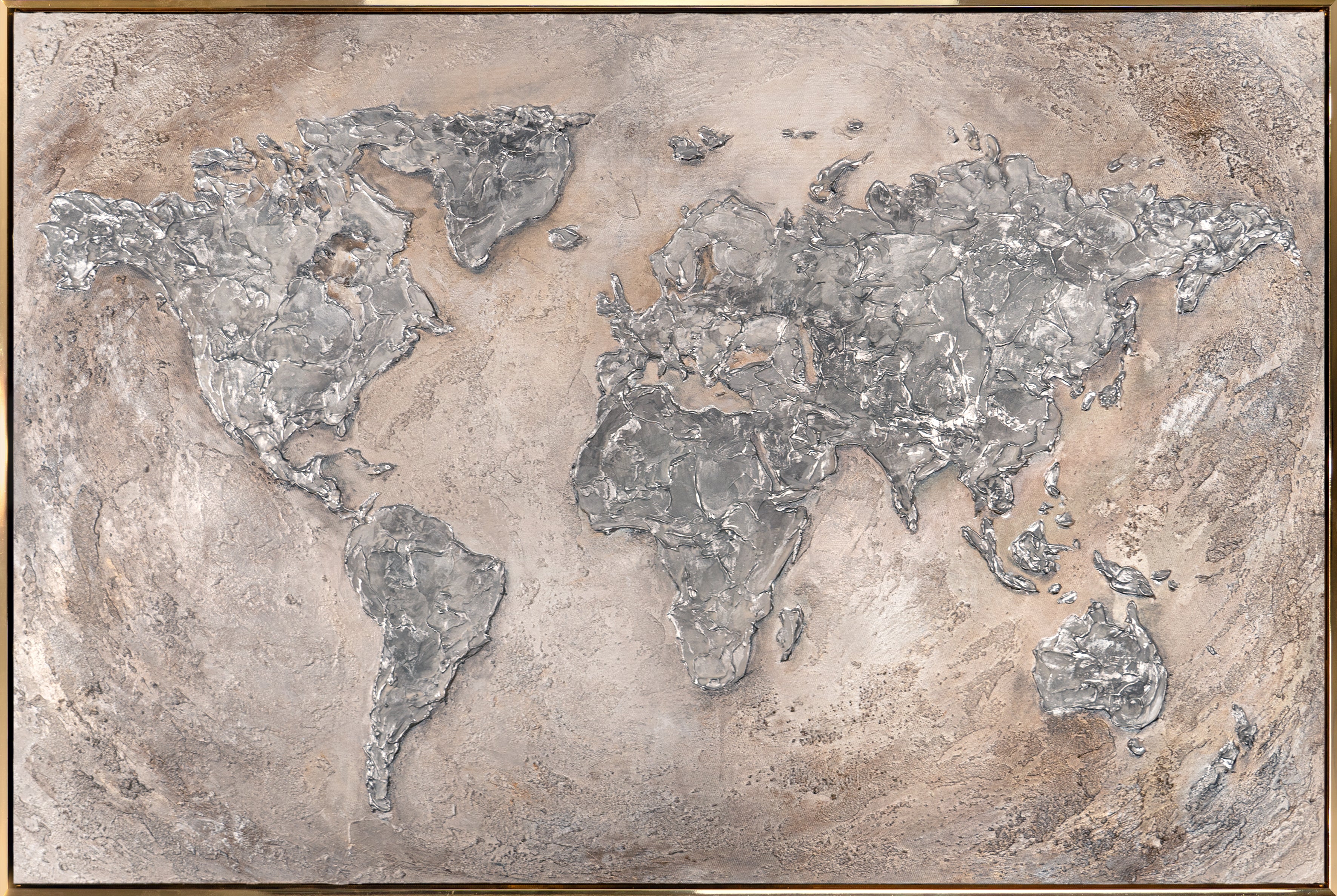 • Strukturmalerei Weltkarte 3D Effekt Metalloptik