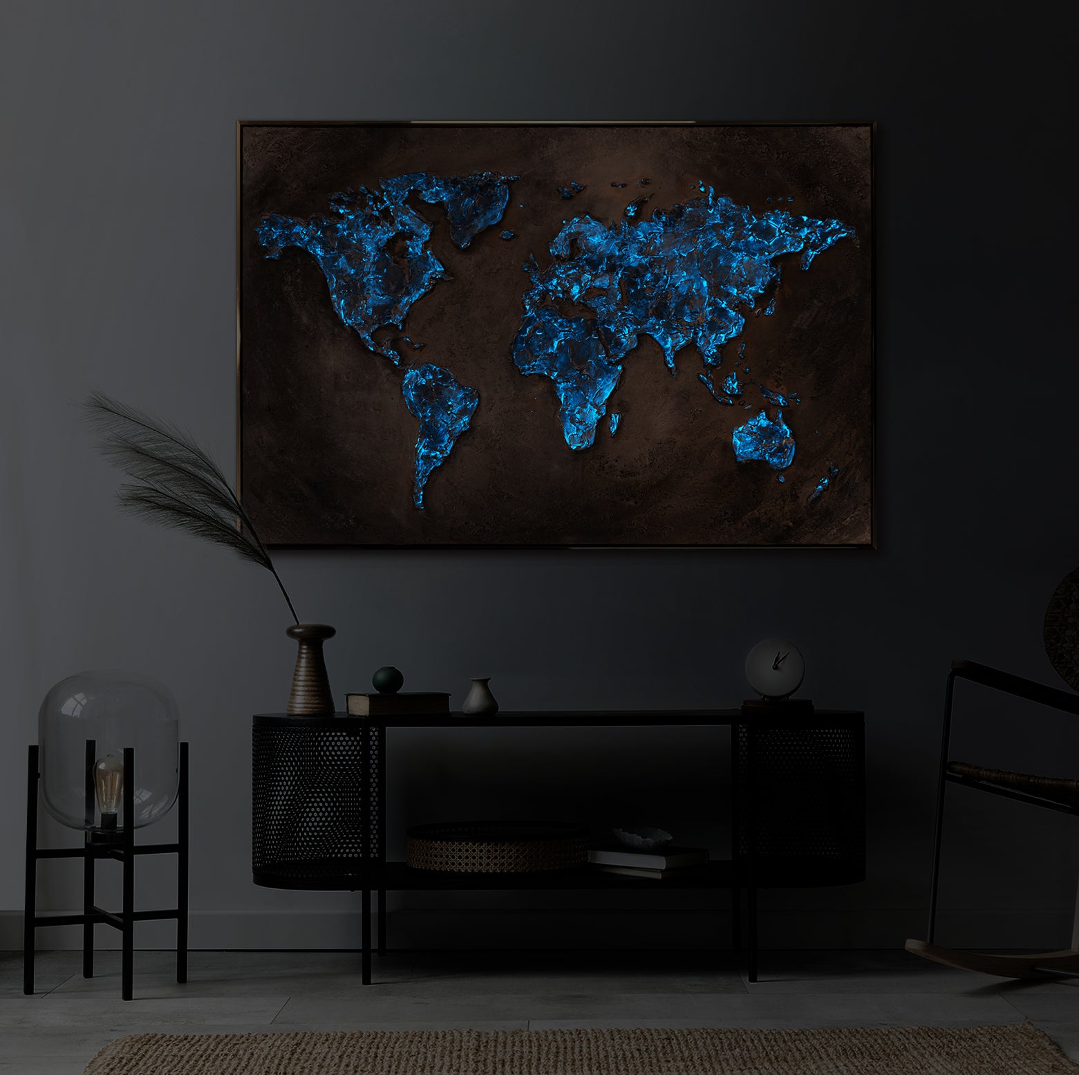 • Leuchtbild Weltkarte Handgemalt Struktur Bronze