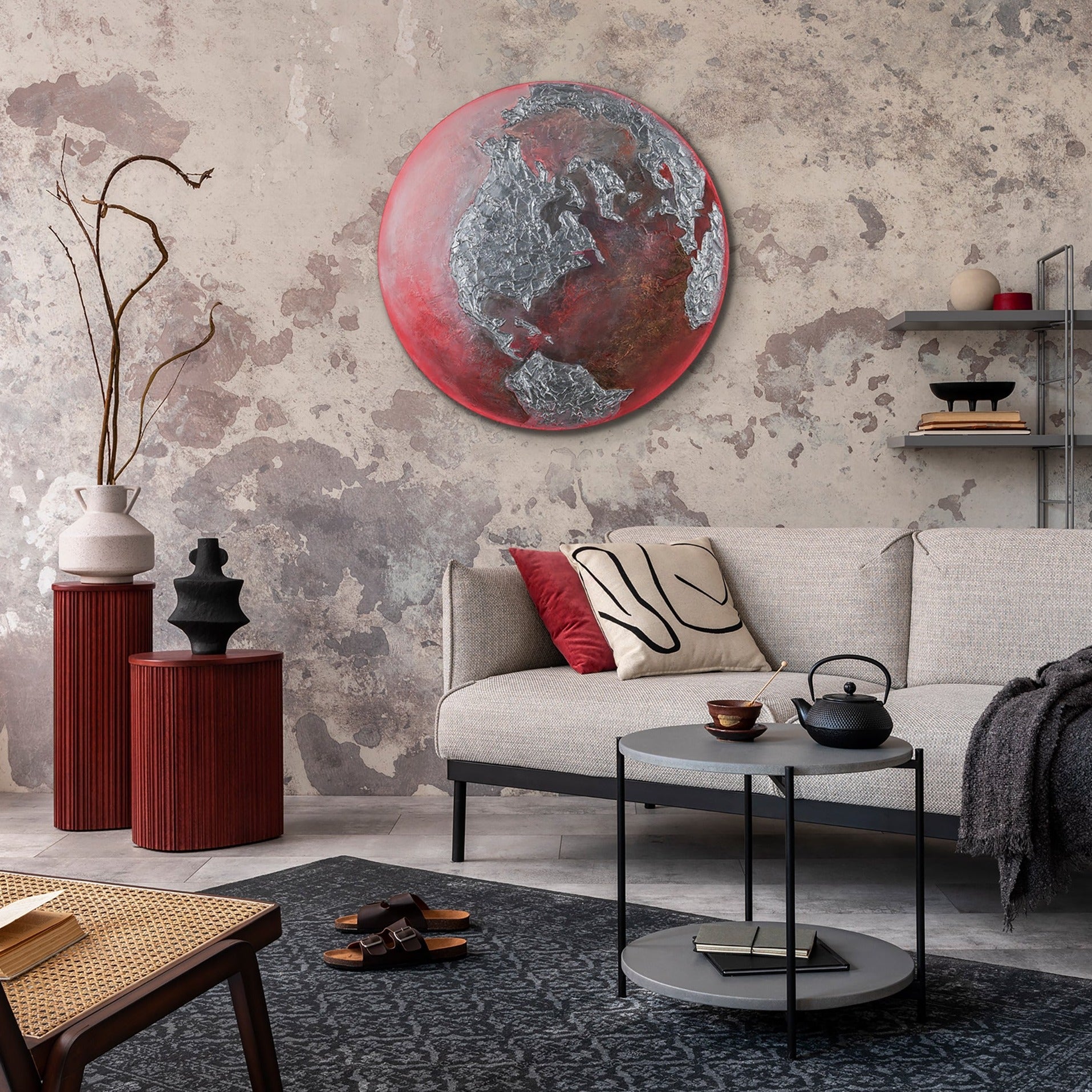 • Strukturmalerei Erde Rundformat Acryl Glow Effekt