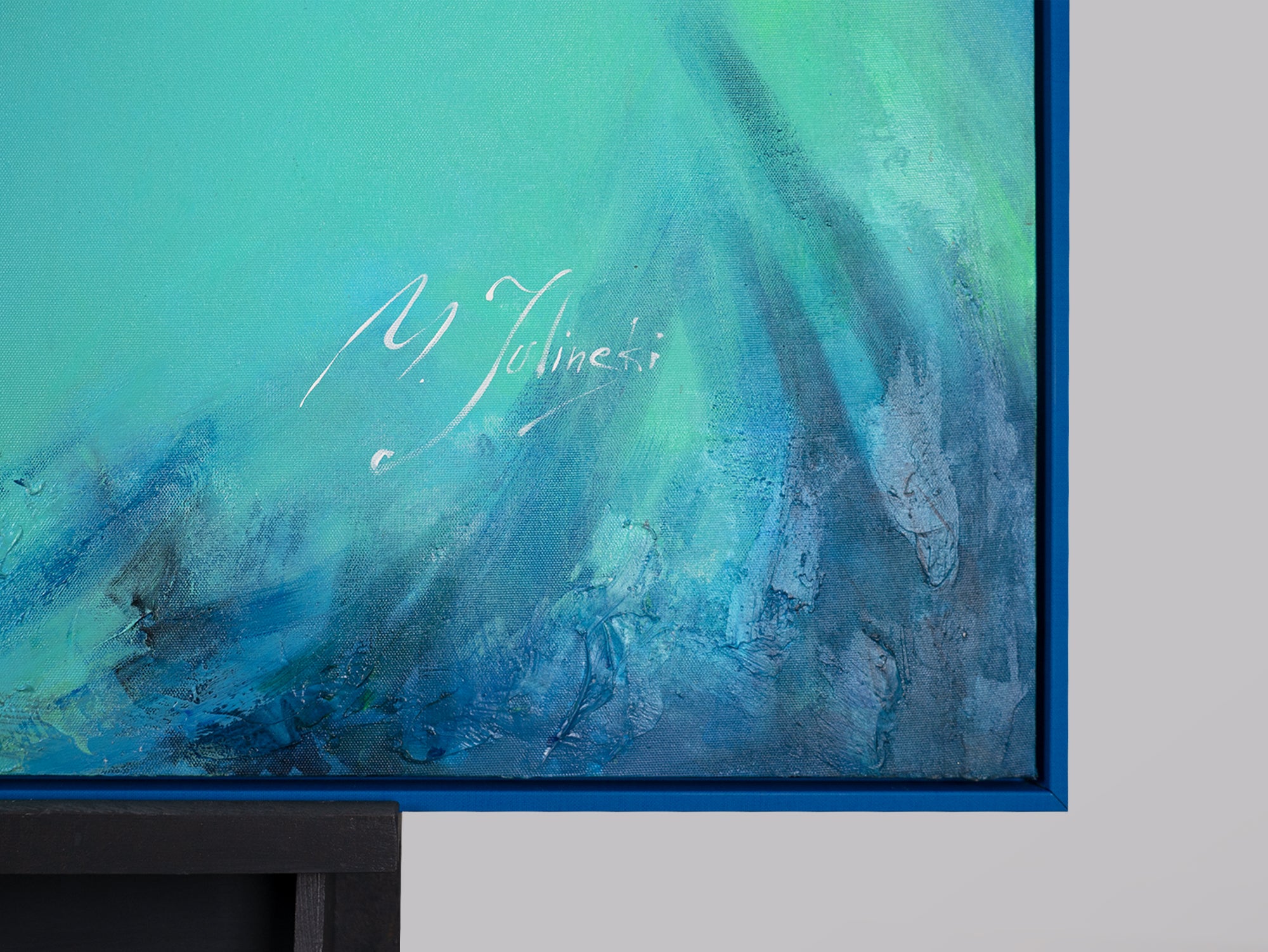 3. Das Gemälde kommt komplett montiert auf einem Keilrahmen. Sie können das Gemälde direkt nach dem auspacken, aufhängen. Das Gemälde benötigt kein Zusatzlicht, da das Tageslicht vollkommen ausreichend ist.