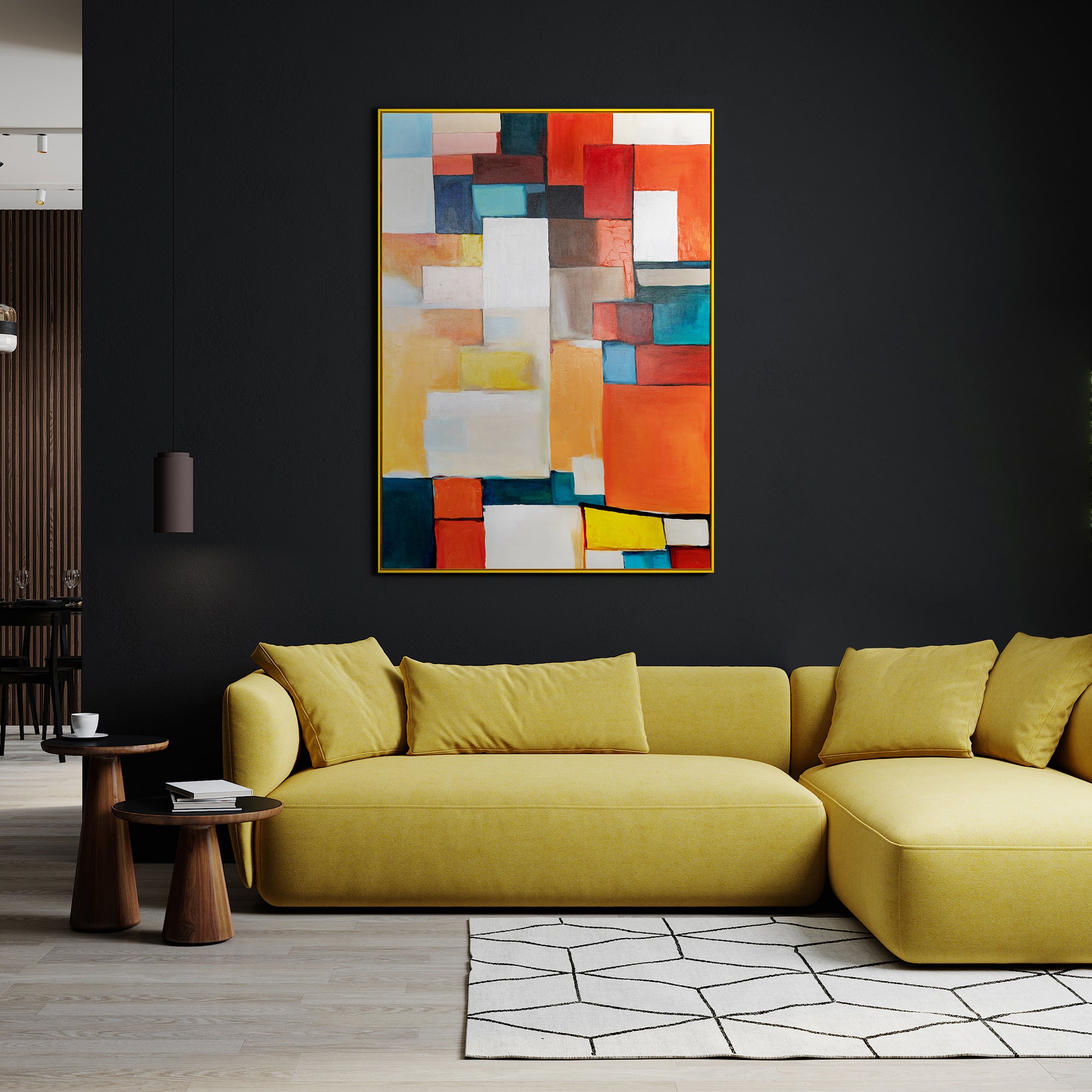 Entdecken Sie das perfekte leinwandbilder abstrakt für Ihr Zuhause mit diesem exklusiven, handgefertigten Acrylgemälde. Jedes Stück ist ein Unikat, das mit Leidenschaft und Präzision auf hochwertiger Leinwand kreiert wurde. Die abstrakten, bunten Quadrate fügen sich zu einem atemberaubenden, modernen Muster zusammen und machen dieses Bild zu einem echten Hingucker in jedem Wohnzimmer. Mit Maßen, die perfekt über dem Sofa oder als zentrales Element Ihrer Wandgestaltung passen, ist dieses Wandbild eine Bereicherung für jede Einrichtung.