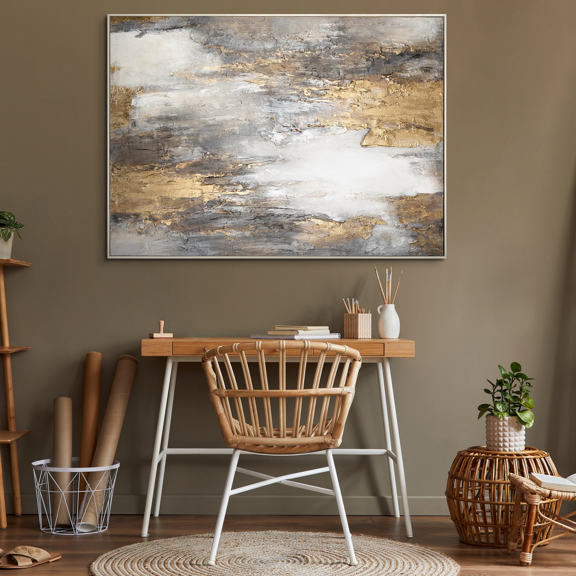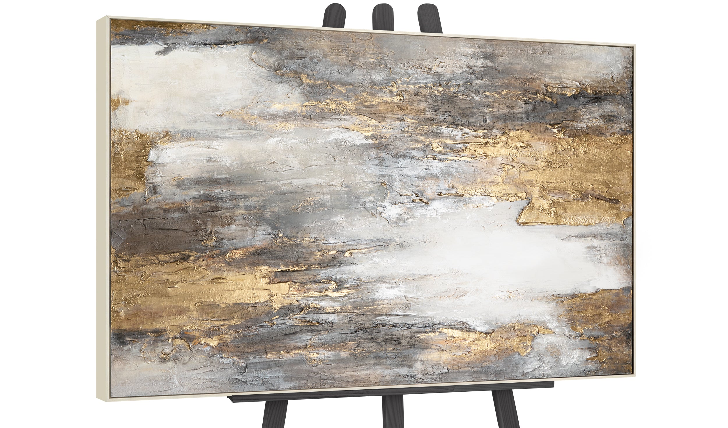 • Abstraktes Kunstwerk in Gold- und Grautönen mit Rahmen, handgemalte Leinwand für moderne Wohnzimmerdekoration, große Gemälde online kaufen