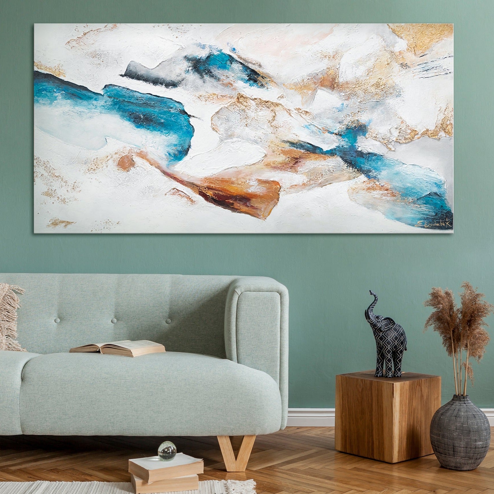 Acrylgemälde auf leinwand mit Rahmen "Smaragd". Wanddeko wohnzimmer