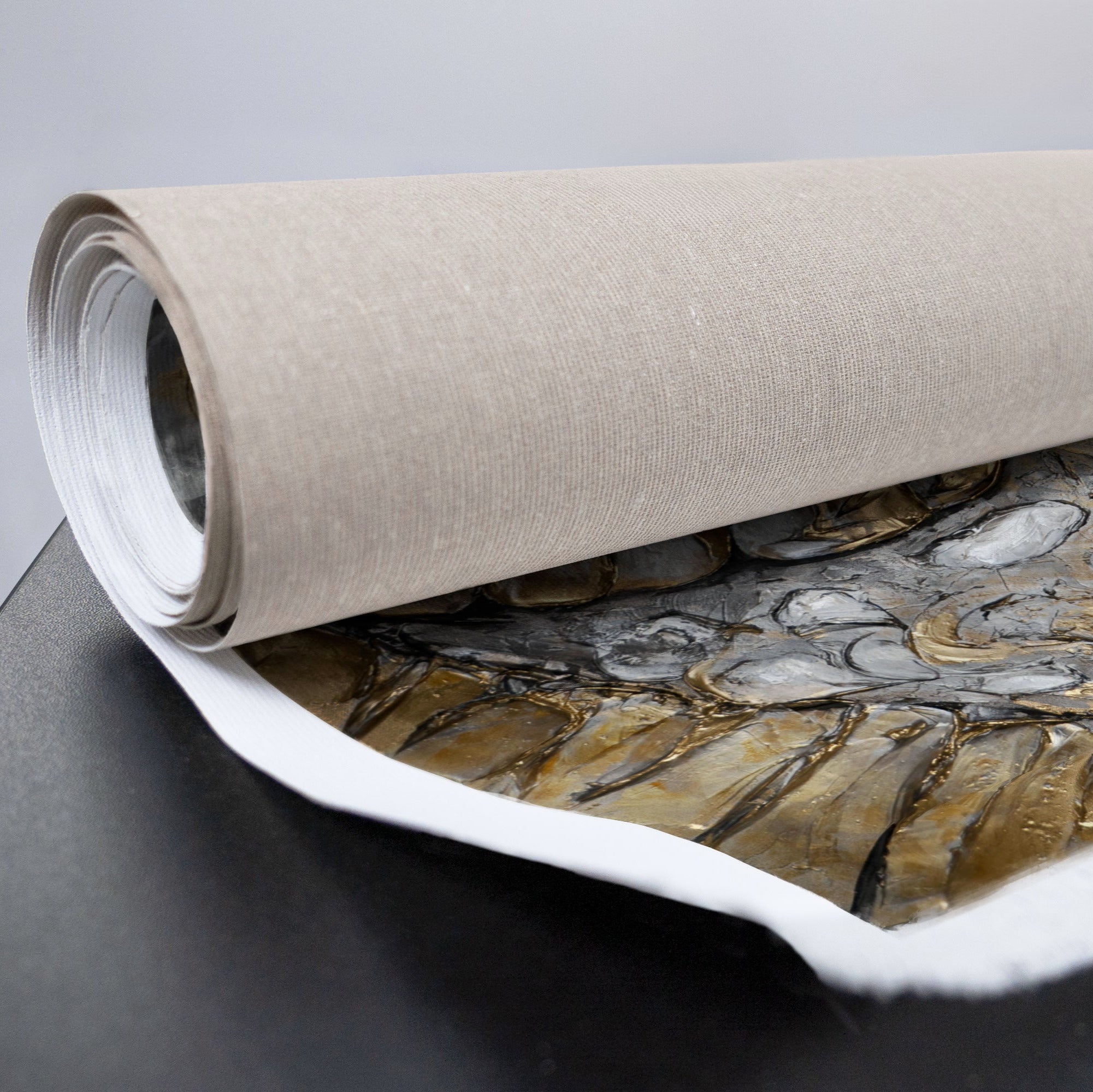 Dieses außergewöhnliche Kunstwerk fängt mit seinen zwei ineinander verschlungenen Fischen in Gold- und Graunuancen eine geheimnisvolle, fast mythische Stimmung ein. Die stark strukturierte Oberfläche entsteht durch dick aufgetragene Acrylpaste und Metallic-Akzente, die das Licht spielerisch reflektieren. Jeder Pinselstrich ist spürbar und verleiht der Komposition eine lebendige, dreidimensionale Tiefe.