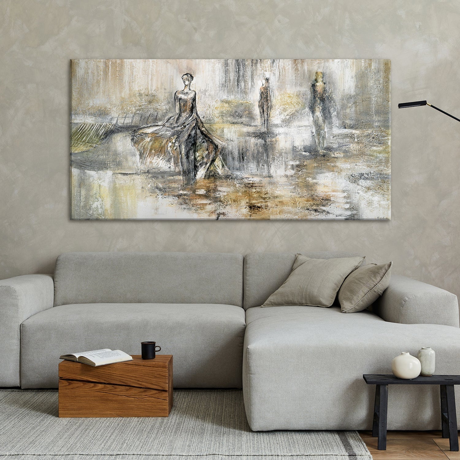 Rätsel, Charme und Zärtlichkeit - so kann man dieses Bild auf Leinwand kurz beschreiben. Jeder sieht darin seine eigene Geschichte - jemand einen geheimnisvolle Fremde, jemand den Moment einer Modenschau. Das ist es, was das Gemälde großartig macht. Das Gemälde gibt den Ton für Ihr Interieur an und unterstreicht Ihre Persönlichkeit an.