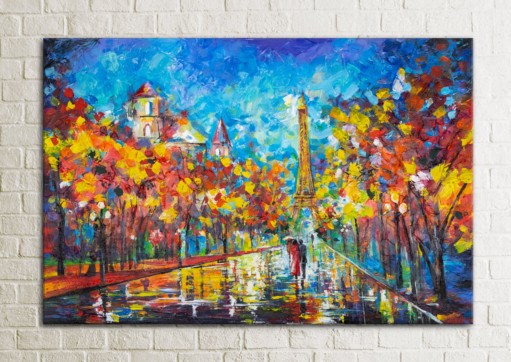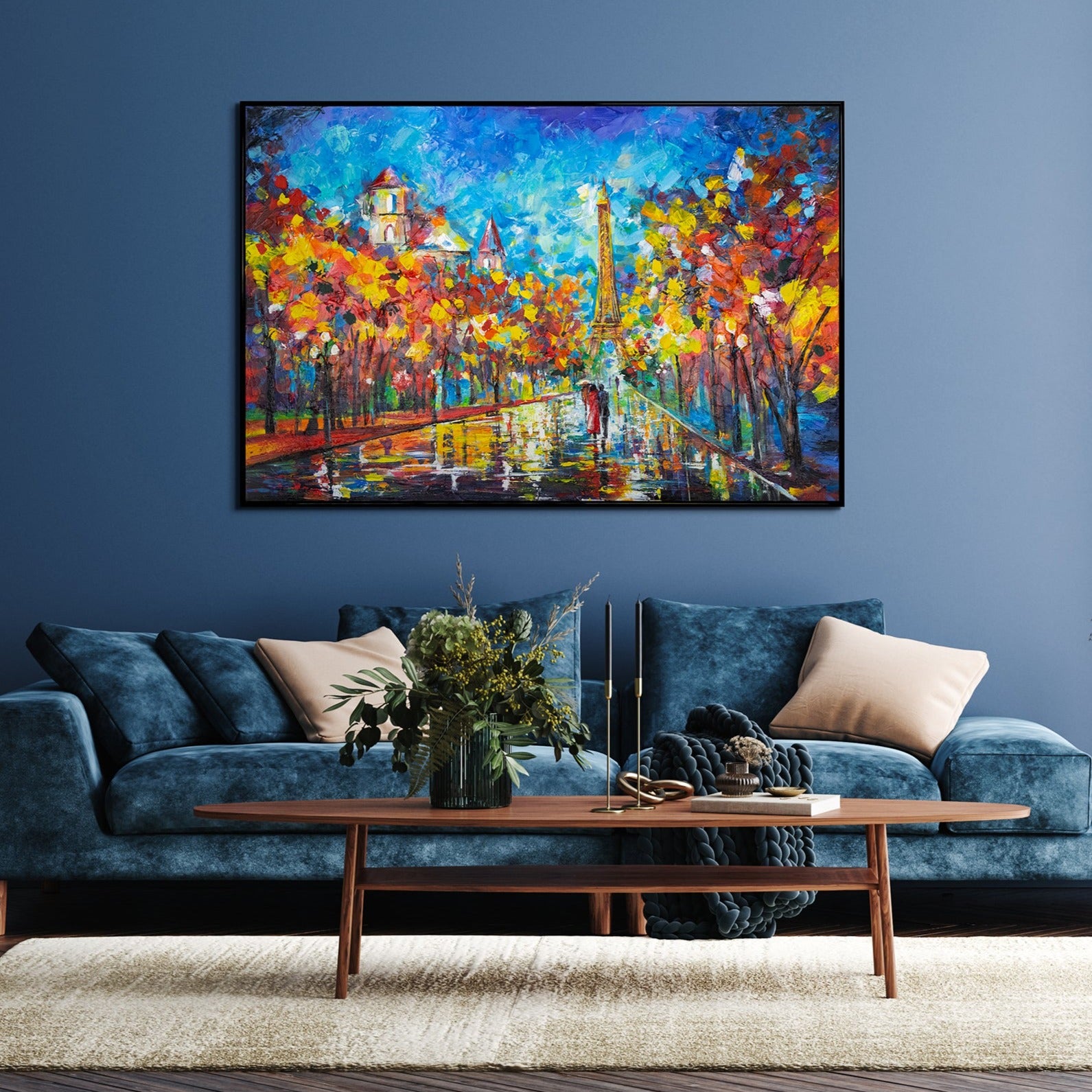 Verleihen Sie Ihrem Zuhause einen Hauch von Pariser Charme mit diesem handgemalten Stadtbild. Die leuchtenden Farben und die eindrucksvollen Details fangen die Magie eines regnerischen Abends in Paris perfekt ein. Jedes Detail dieses Kunstwerks ist 100% handgefertigt und macht es zu einem einzigartigen Unikat. Genießen Sie die kostenlose Lieferung direkt zu Ihnen nach Hause.