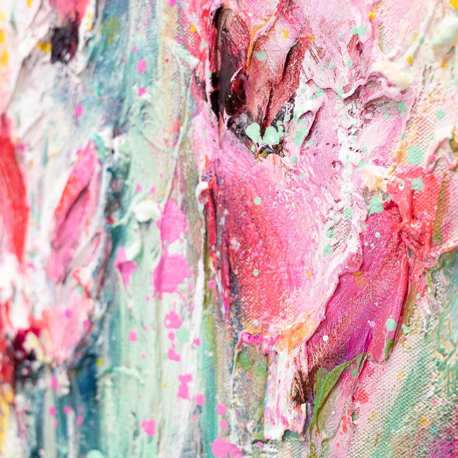 Tauchen Sie ein in die farbenfrohe Welt dieses handgemalten Blumen-Gemäldes. Die intensiven Farben und die lebendigen Formen schaffen eine fröhliche und einladende Atmosphäre in jedem Raum. Dieses Kunstwerk ist vollständig handgefertigt und ein einzigartiges Unikat. Wir bieten Ihnen eine kostenlose Lieferung direkt zu Ihnen nach Hause.
