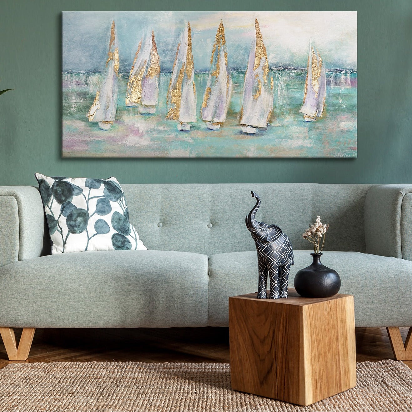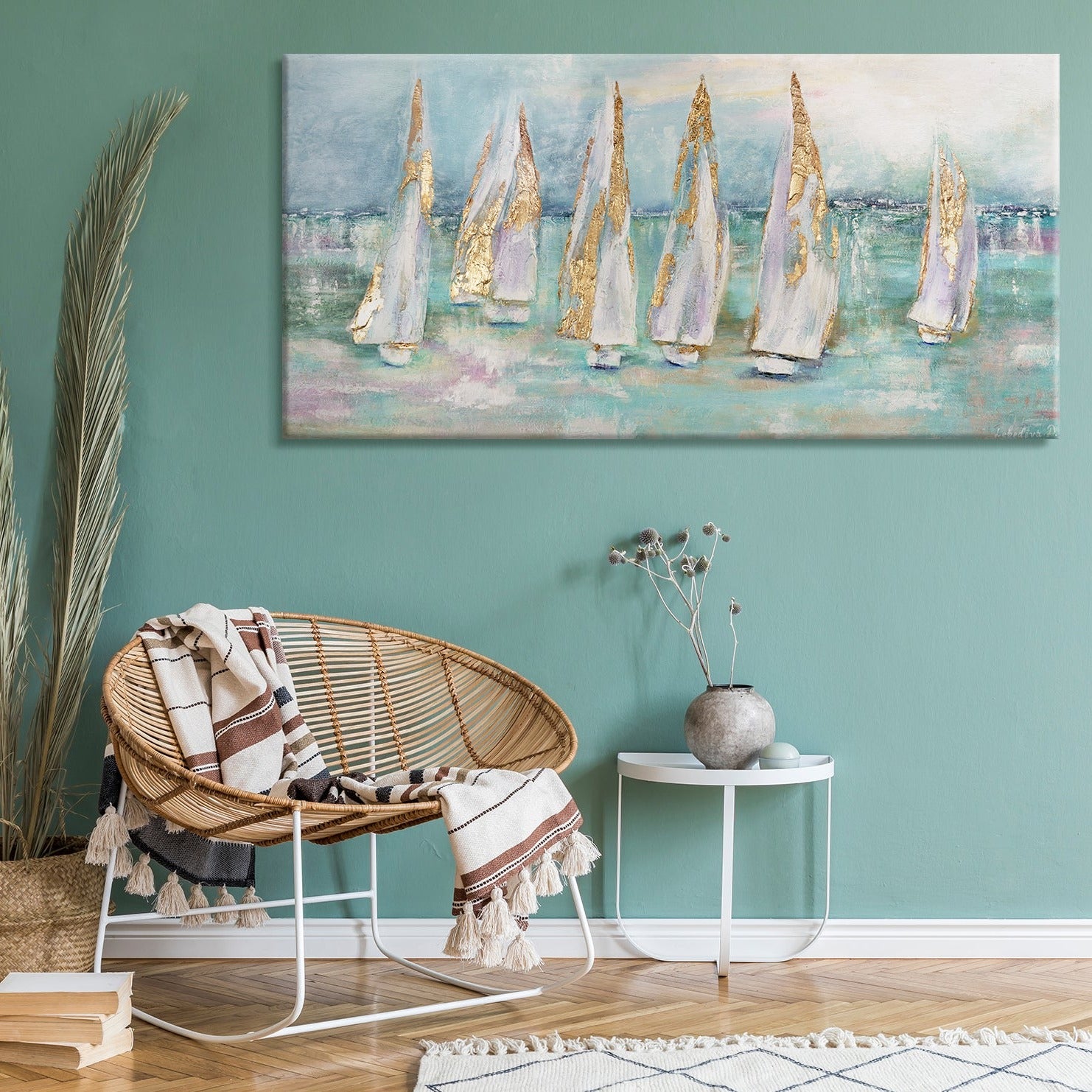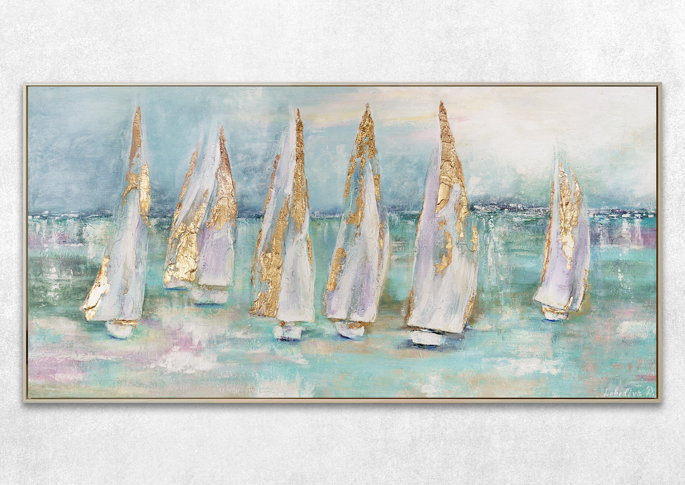 Handgemalte acrylgemälde meereslandschaft abstrakt "Segelboote"
