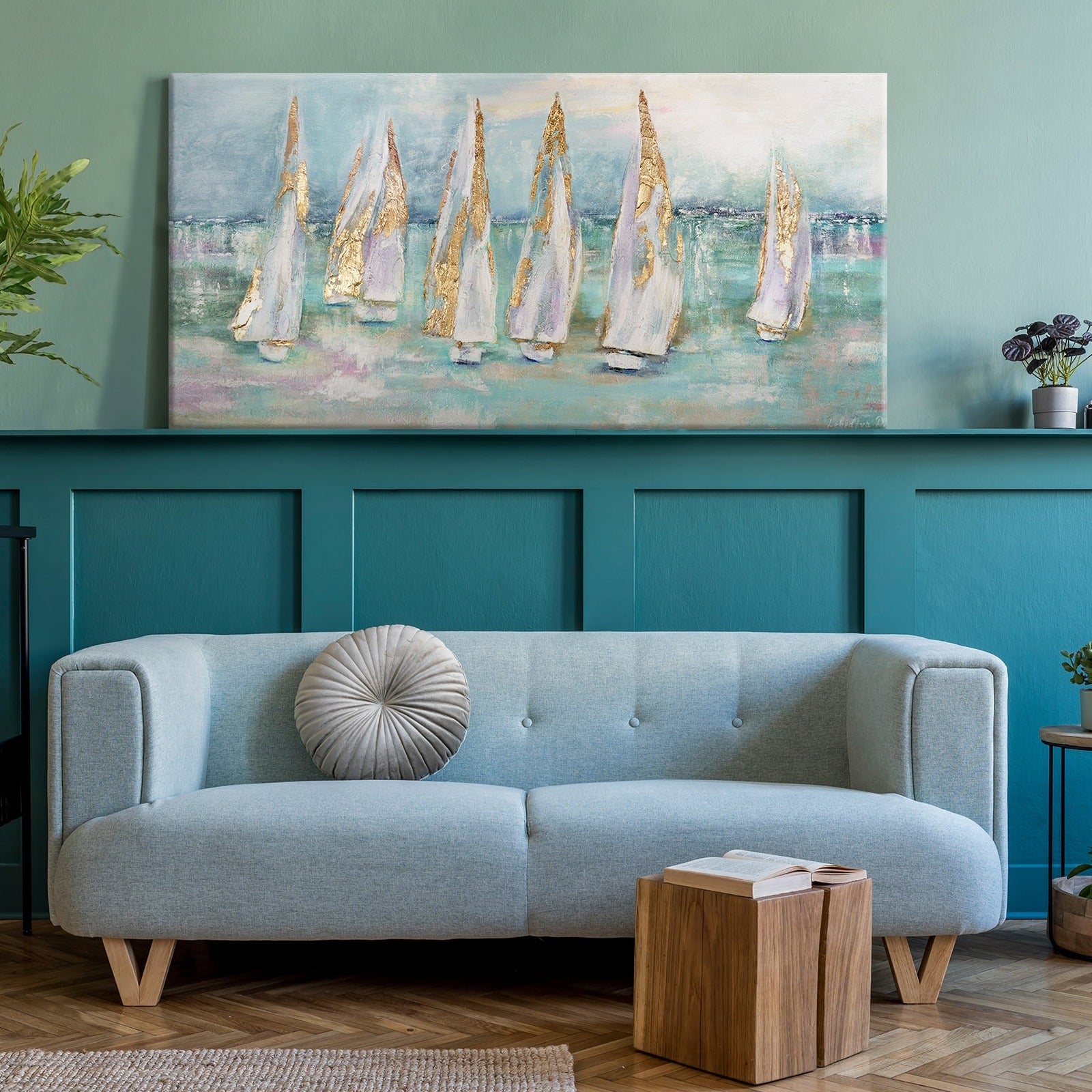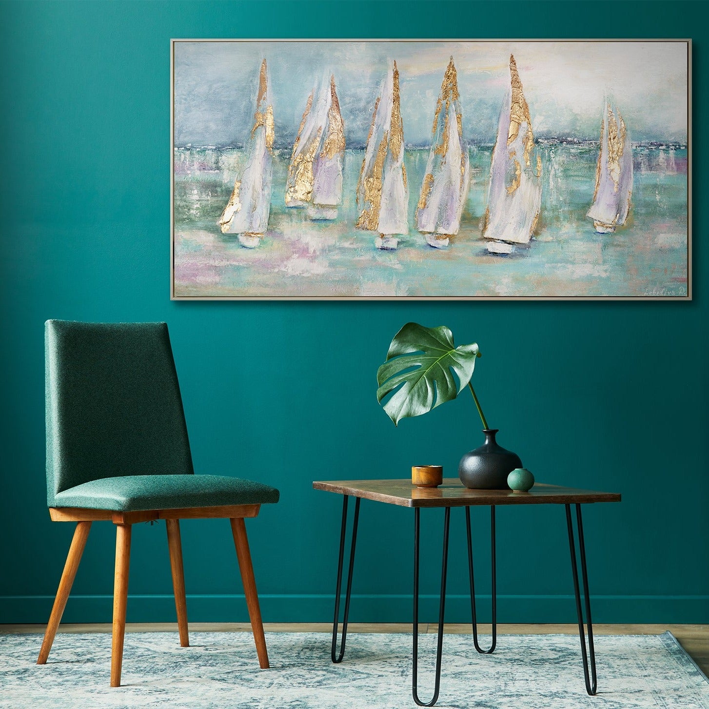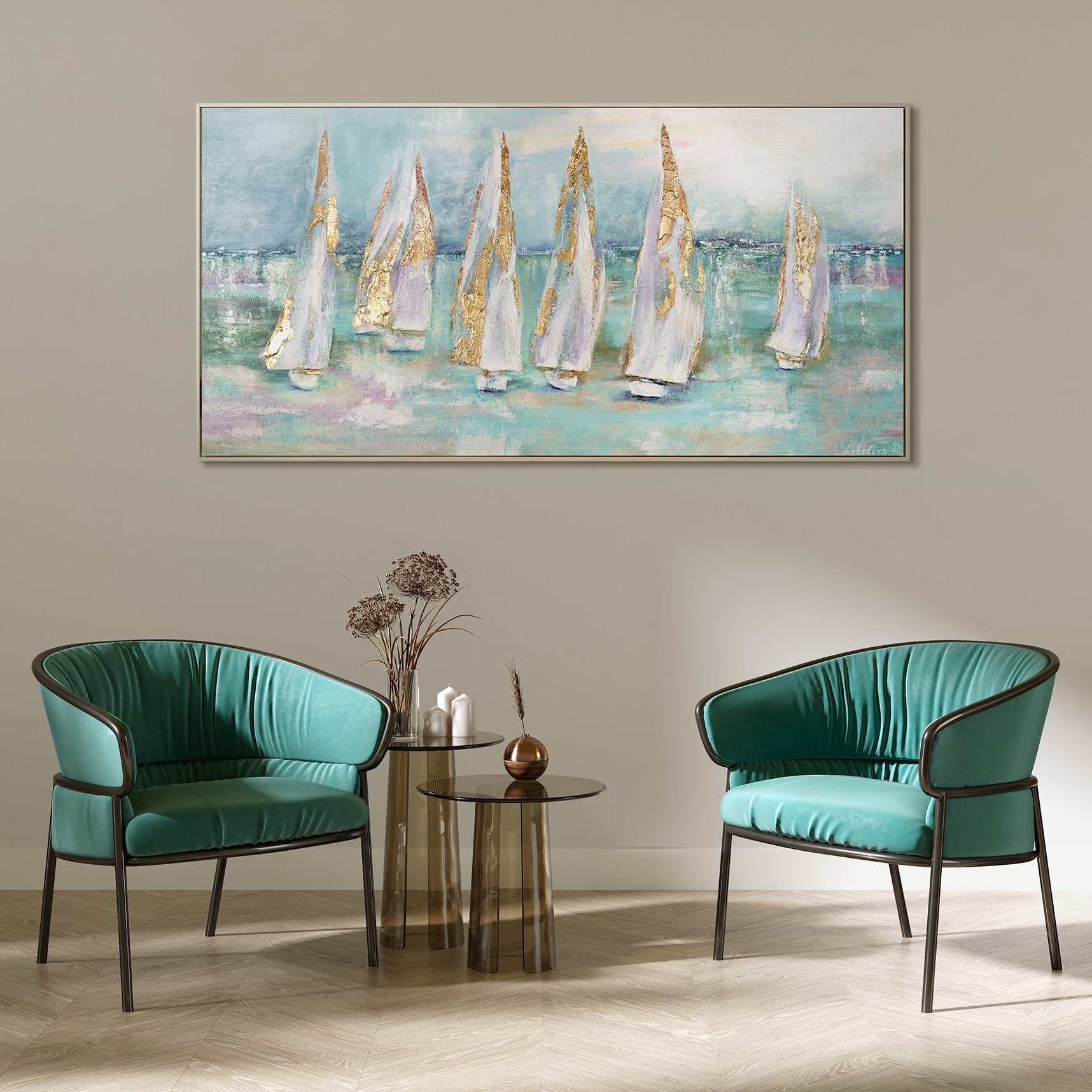 Handgemalte acrylgemälde meereslandschaft abstrakt "Segelboote"