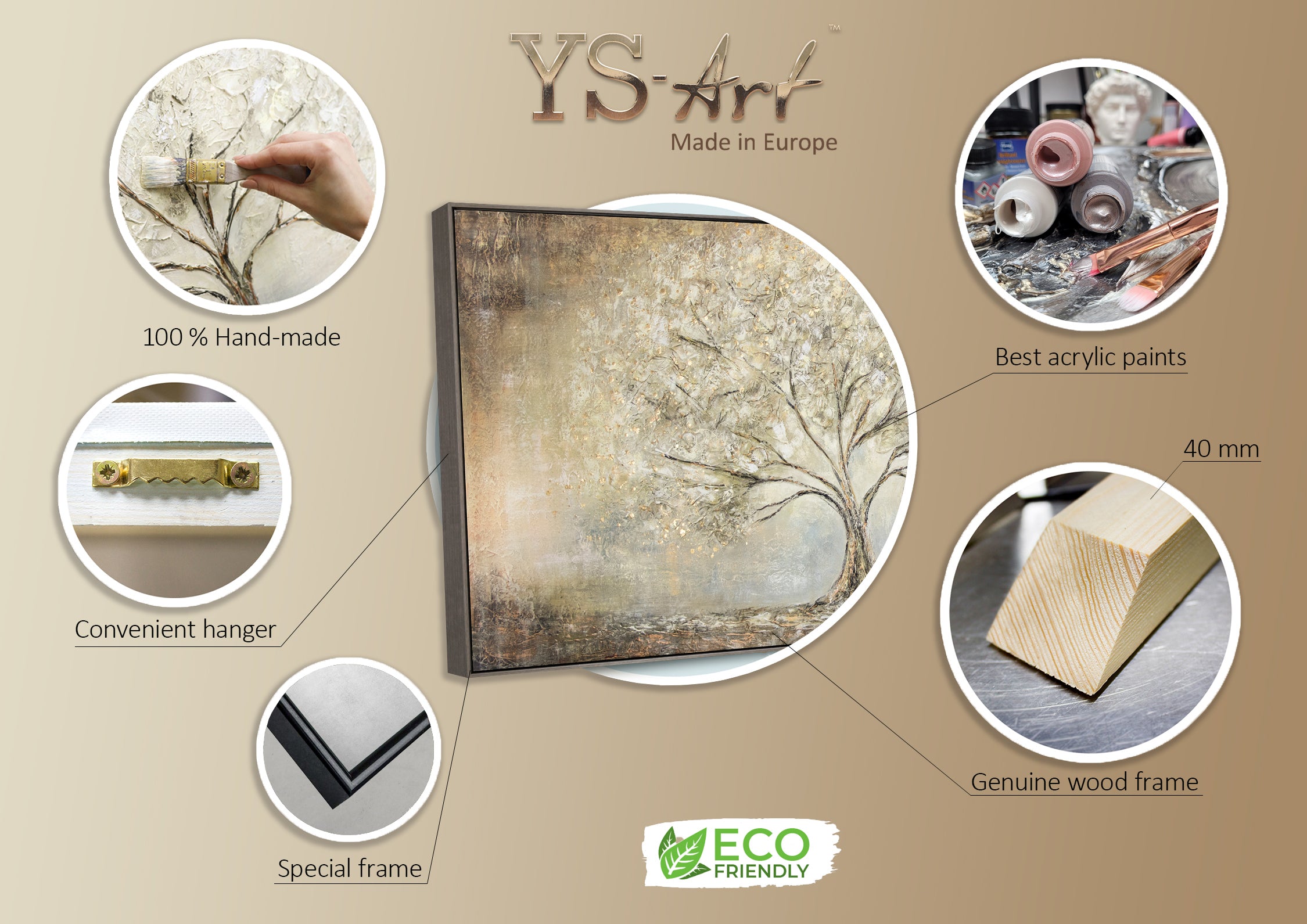 Der goldene Baum auf diesem Gemälde wird nicht nur eine Ergänzung Ihres Interieurs sein, sondern es wird auch eine Art Amulett sein, das viel Glück, Erfolg im Geschäfts- und Privatleben anzieht. Darüber hinaus ist ein großes Acrylgemälde auf Leinwand ein gutes Geschenk für einen geliebten Menschen oder Kollegen.