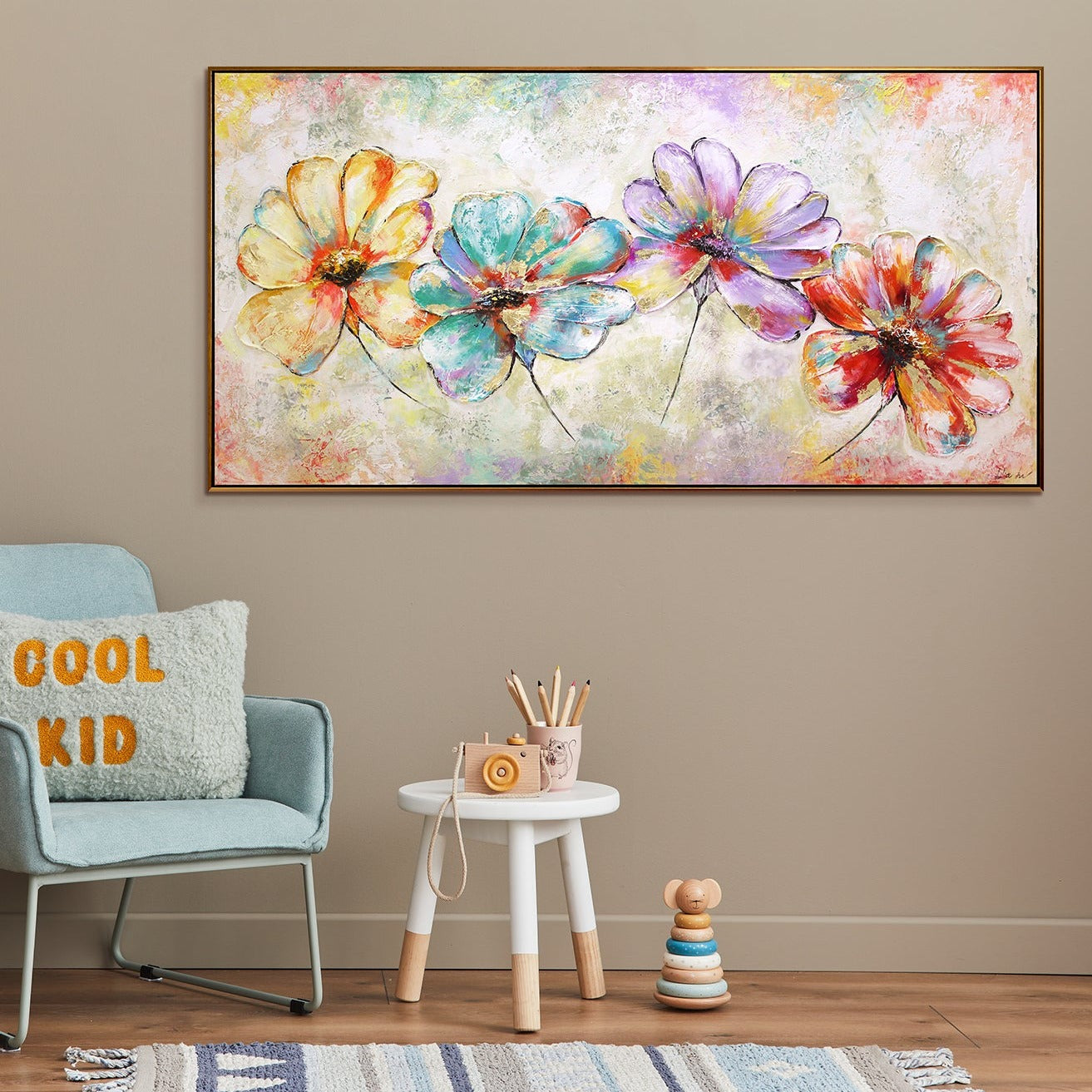 • Raumansicht mit dem Blumenbild an der Wand