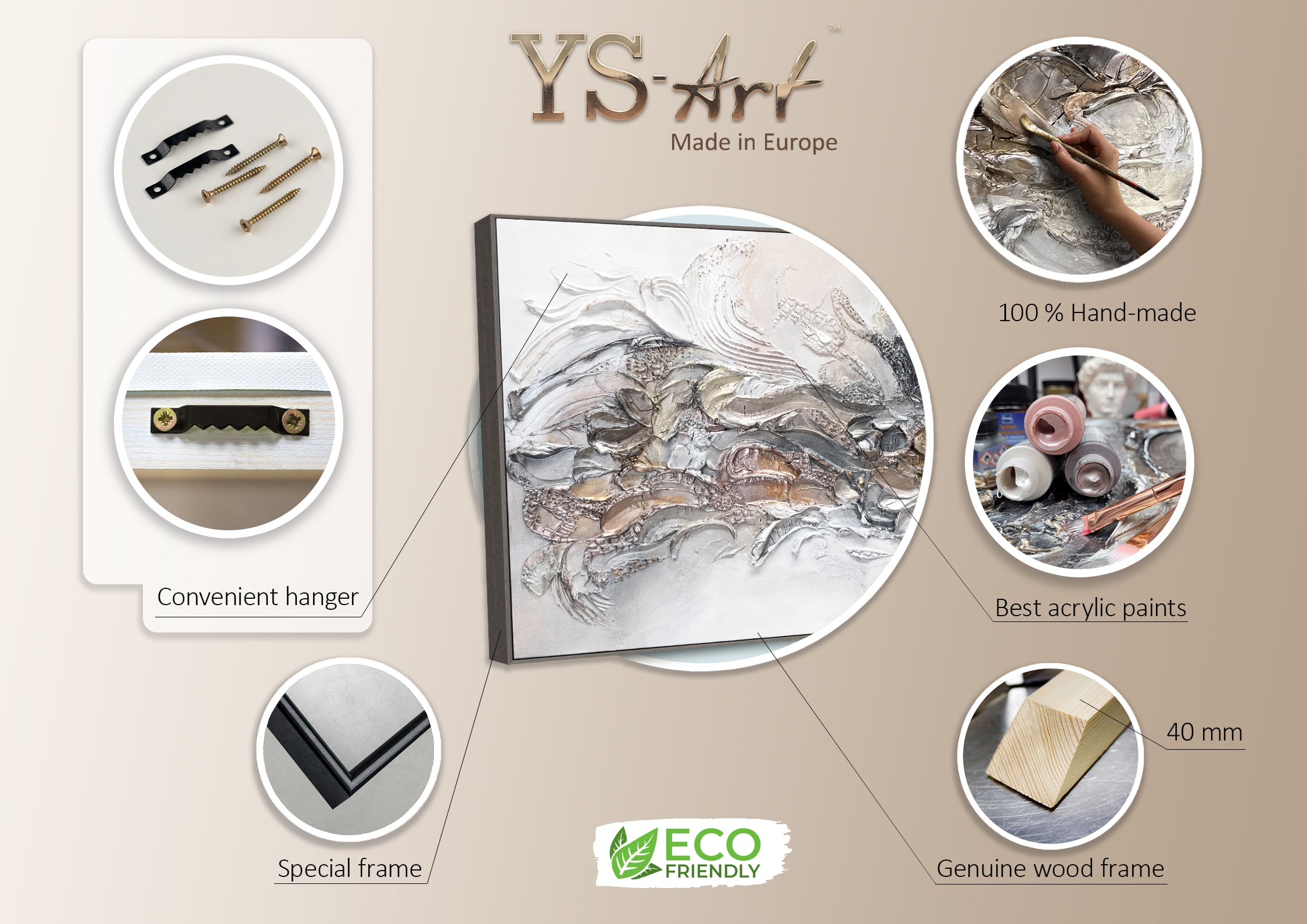 • Materialien: Acryl, Leinwand, Keilrahmen aus Naturholz.