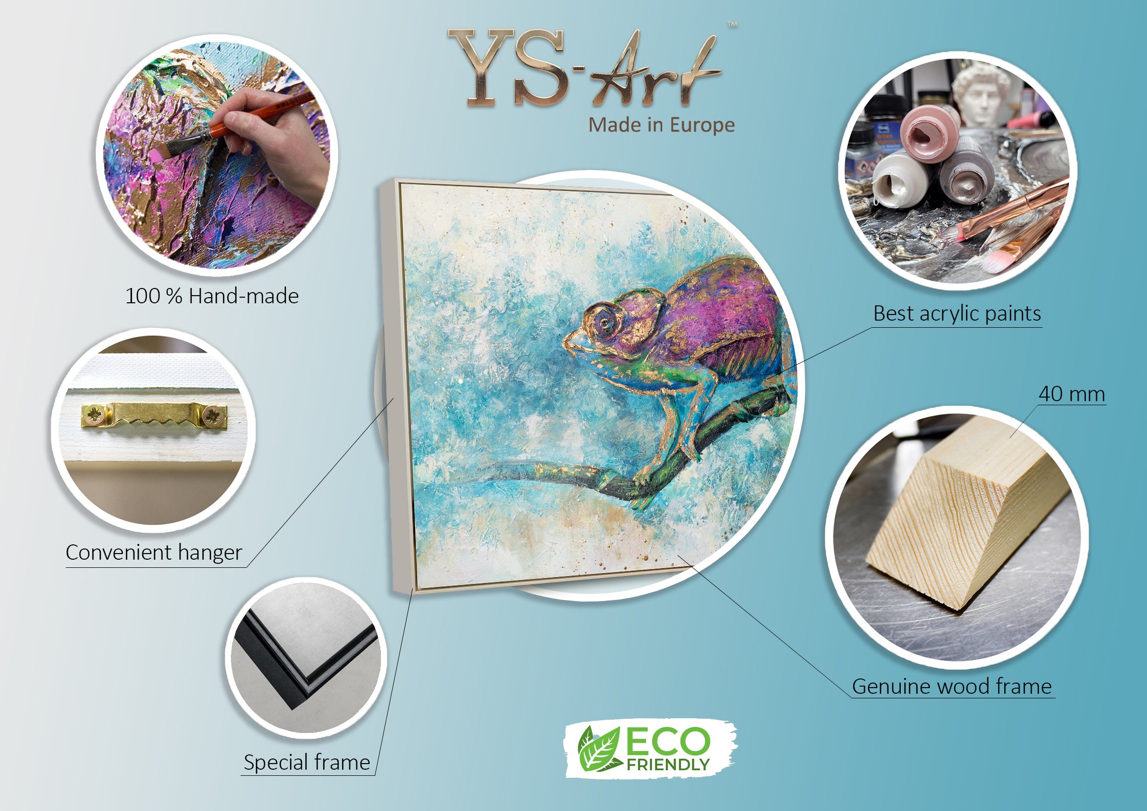 • Acrylkunst Wanddeko Tier bunt Struktur Chamäleon Design
