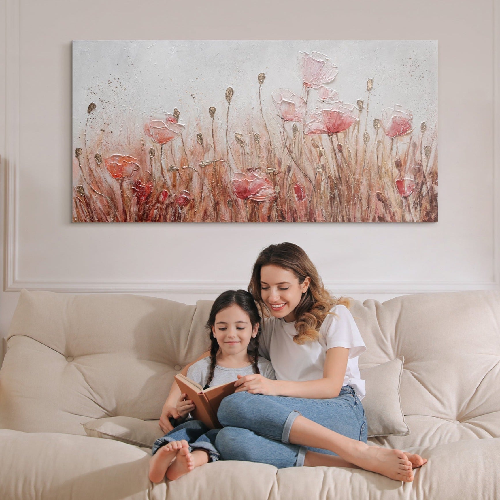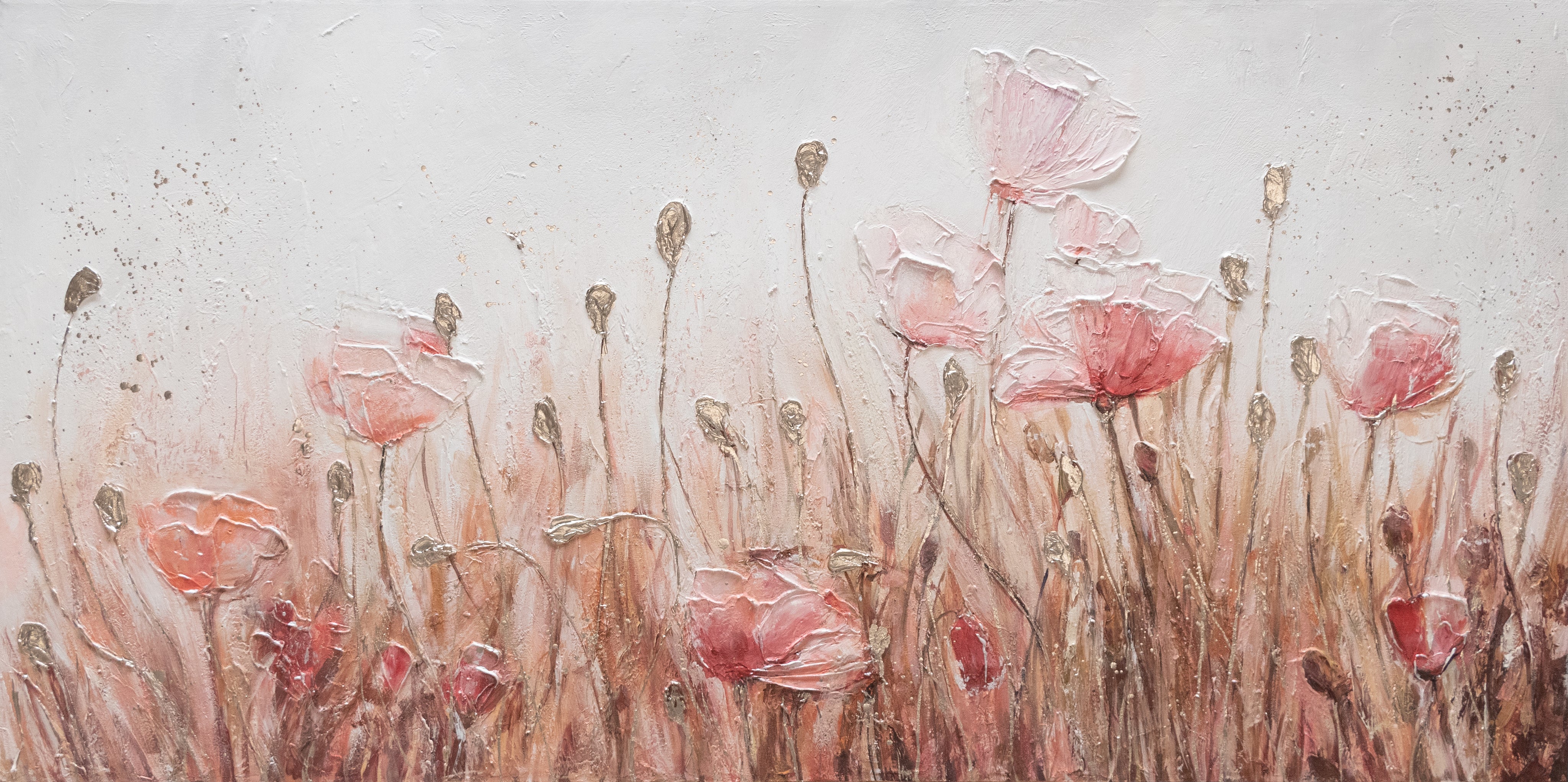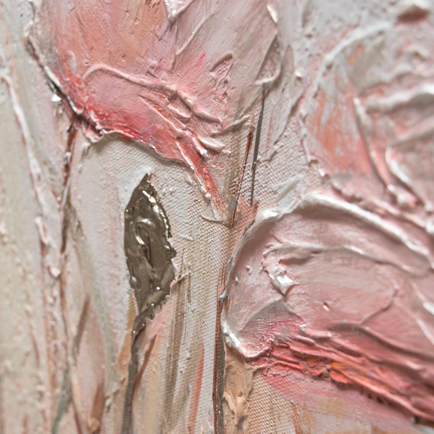Erleben Sie die zarte Schönheit dieses handgemalten Blumen-Gemäldes. Die weichen Farbtöne und die feinen Details der Blüten schaffen eine beruhigende und elegante Atmosphäre in Ihrem Zuhause. Jedes Detail dieses Kunstwerks ist 100% handgefertigt und ein einzigartiges Unikat. Genießen Sie die kostenlose Lieferung direkt zu Ihnen nach Hause.