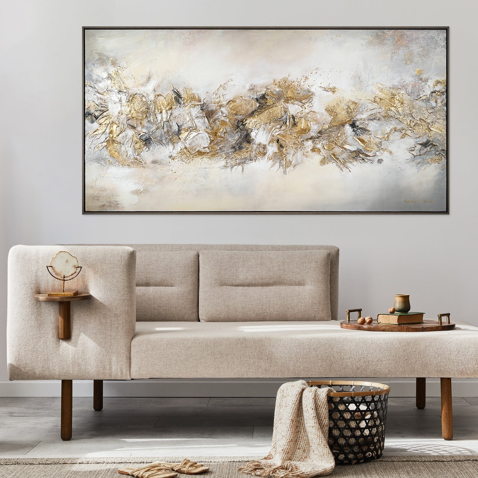 Modernes gold leinwand gemälde mit rahmen "Glückslinie"