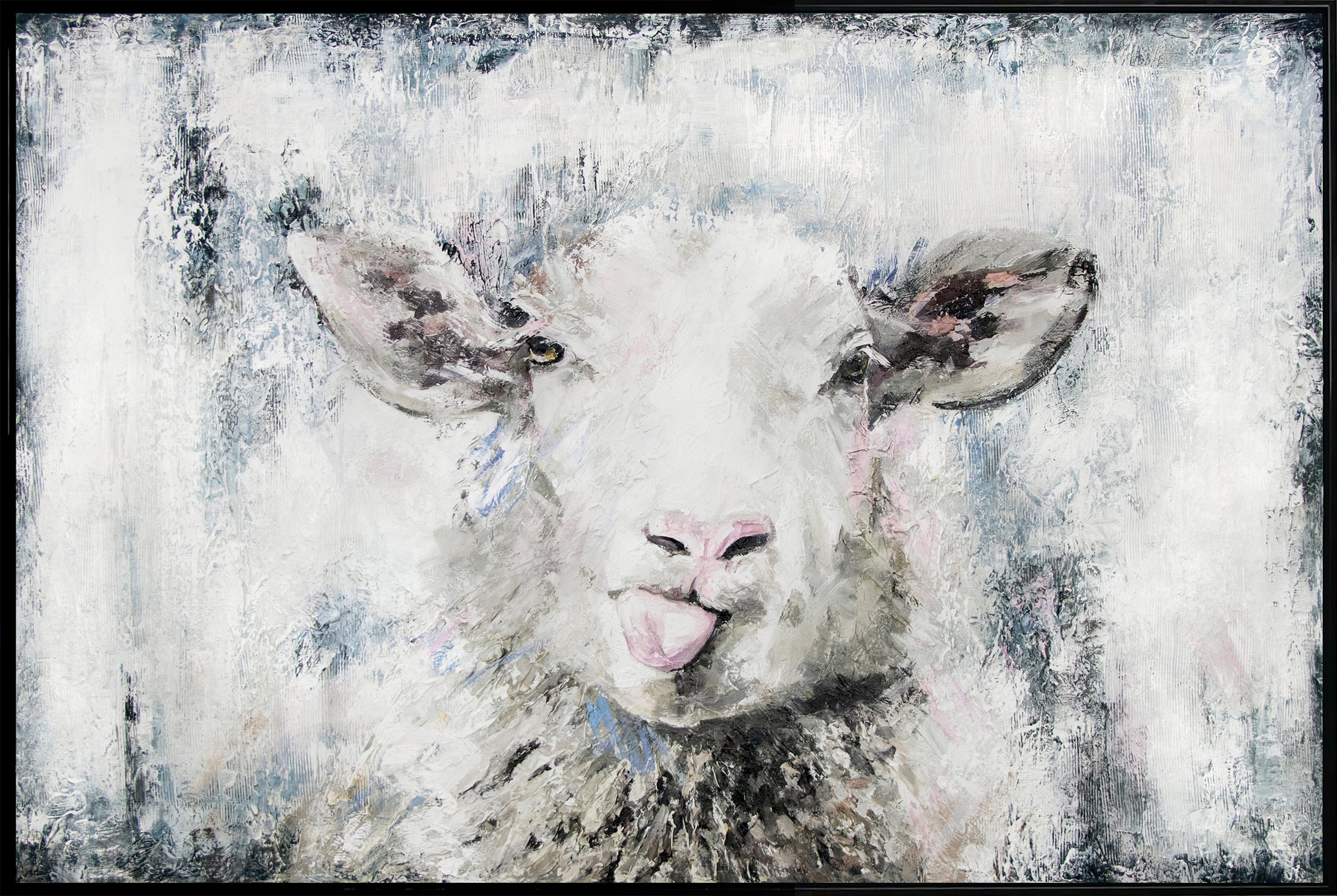 Bereichern Sie Ihr Zuhause oder Büro mit diesem charmanten, modernen Kunstwerk, das ein liebevoll gemaltes Schaf darstellt. Das Bild besticht durch kräftige Kontraste und ausdrucksstarke Pinselstriche in Acrylfarbe. Es ist 100% handgemalt und wird durch einen eleganten Rahmen hervorgehoben.